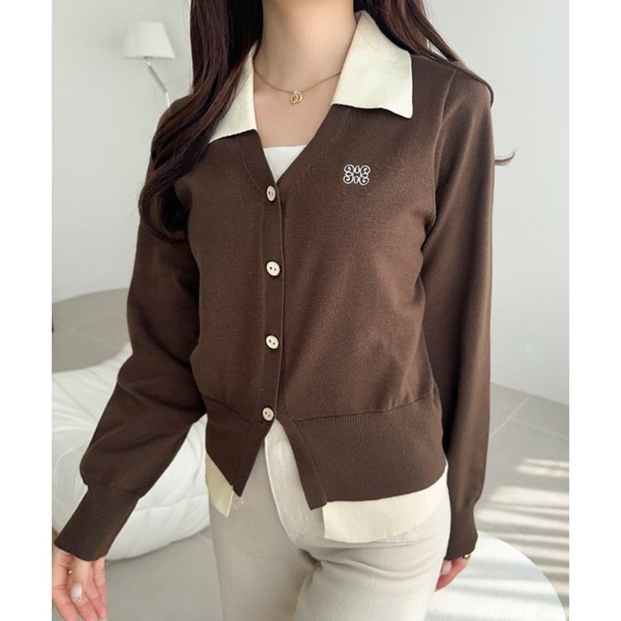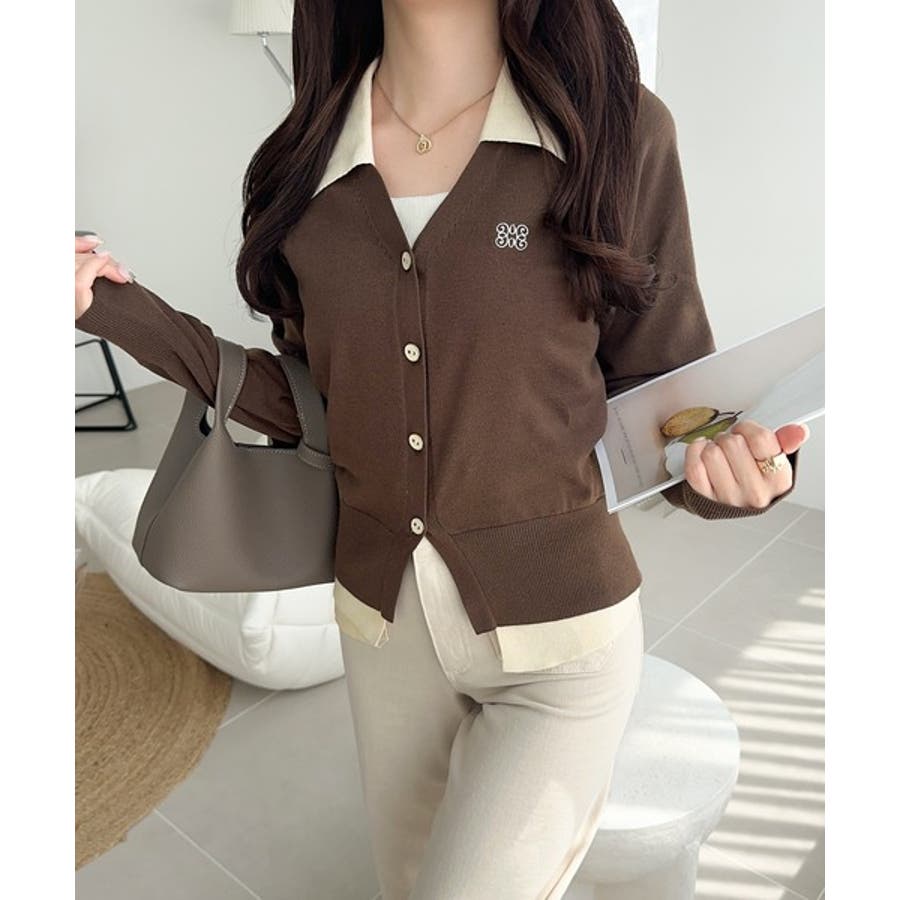 シャツとカーデをレイヤードしたようなデザインが魅力の主役級ニットカーディガン!
