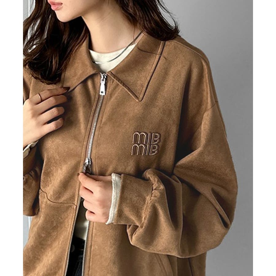柔らかタッチで上品見え◎立体刺繍デザインスエードポンチ素材ダブルジップアウター