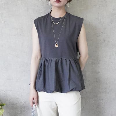 シルクタッチ接触冷感異素材ペプラムバルーンTシャツ ノースリーブTシャツ