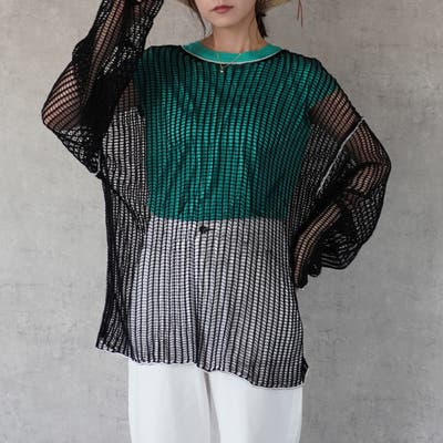 #メッシュ #レイヤード #重ね着 #ニット #サマーニット #トップス #春夏 #グリーン #ブラック #ベージュ