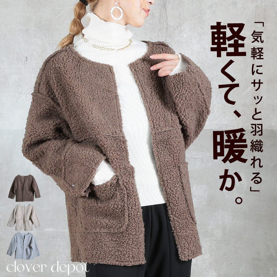 ゆったりしたショート丈シャツ レディース ボアジャケット プードルファーな 可愛い素材感と