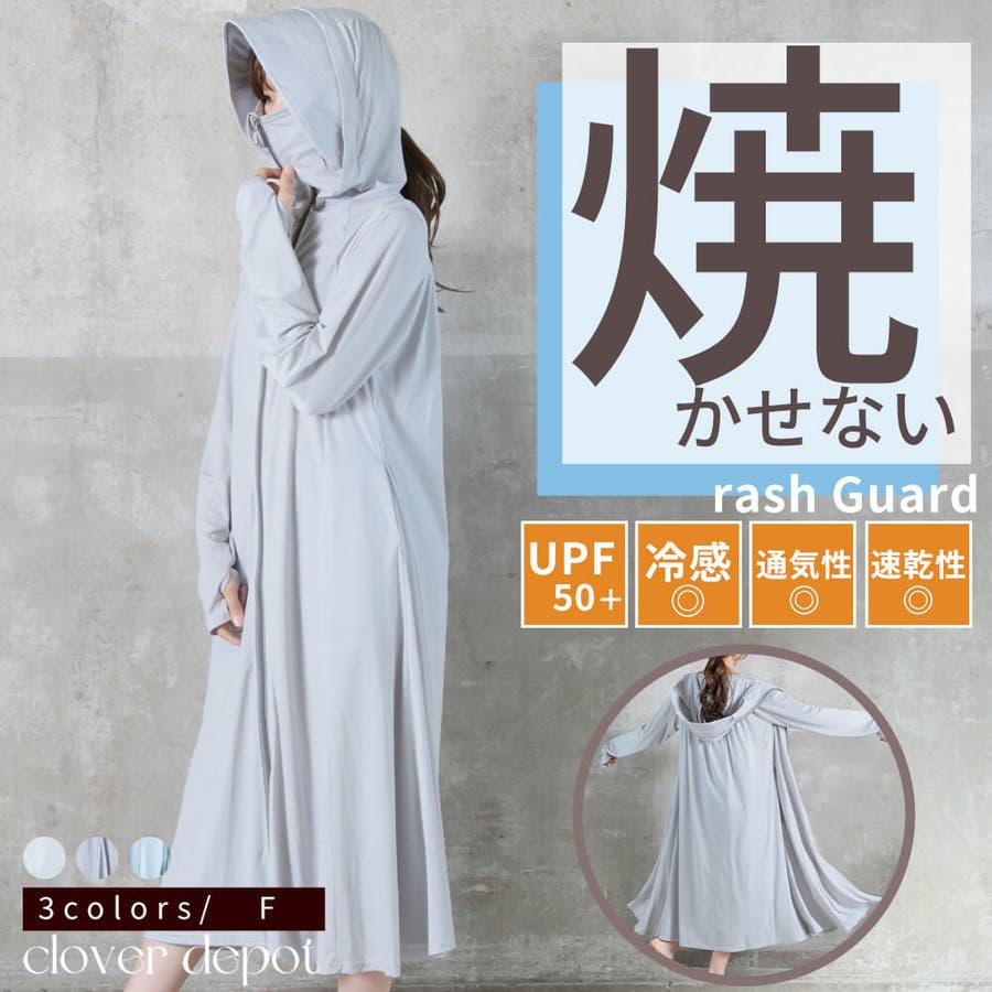 ロング丈+フード+フィンガーホールだから全身余すことなくUVカット◎頭の先から指先まで全体を覆っているので、紫外線予防もばっちり!