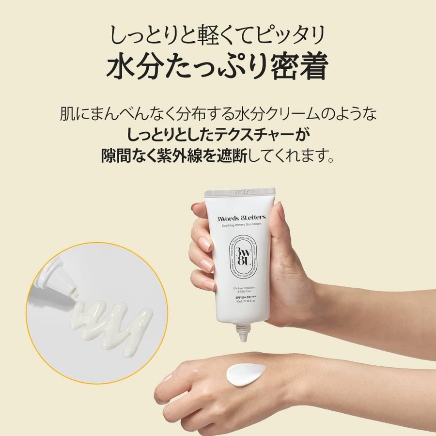 SPF 50+PA++++でUVAとBを同時にブロック!3W8Lの強力なダブルブロッキング保護膜で、紫外線から肌を長時間保護します。また、水分成分と油性成分の配合で肌をうるおいで満たしながらバリアを強化し、外部刺激からも肌を保護します。