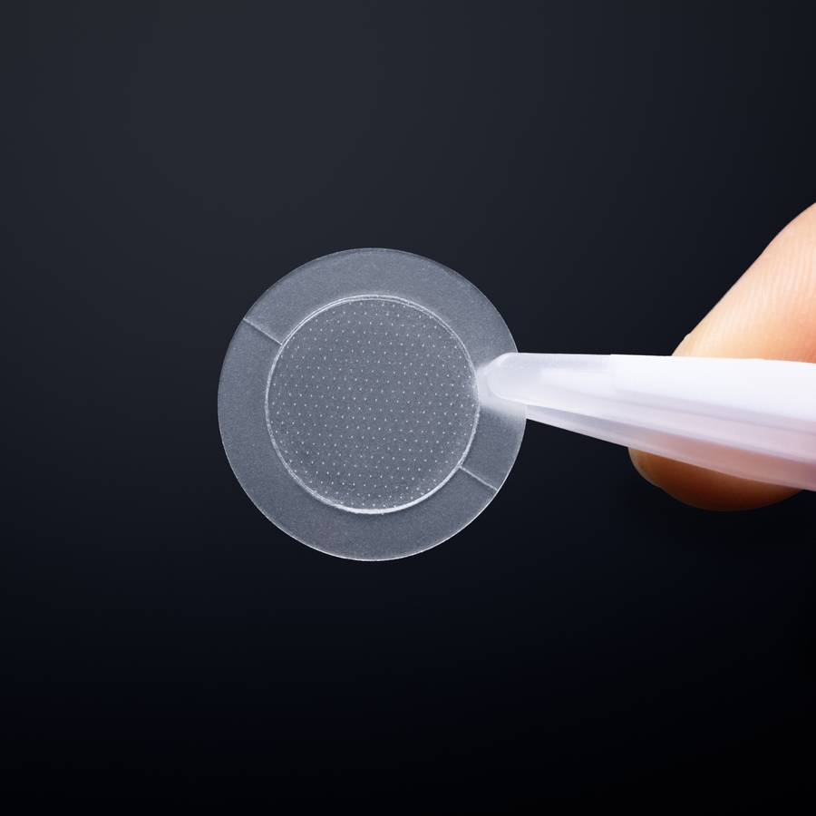 (1) 袋を開封し、トレイからパッチを取り出します。