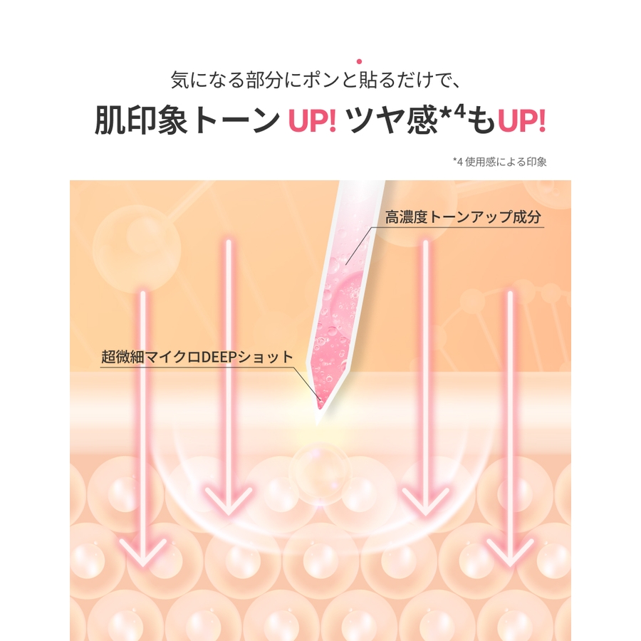 独自のマイクロDEEPショット技術により、美容成分を角質層のすみずみまで届け、肌印象のトーンUPやツヤ感*⁴をサポート。