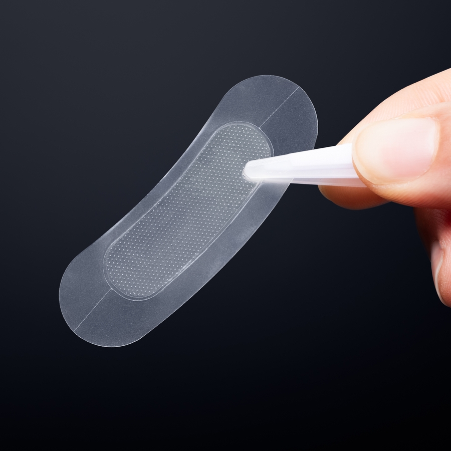 (1) 袋を開封し、トレイからパッチを取り出します。