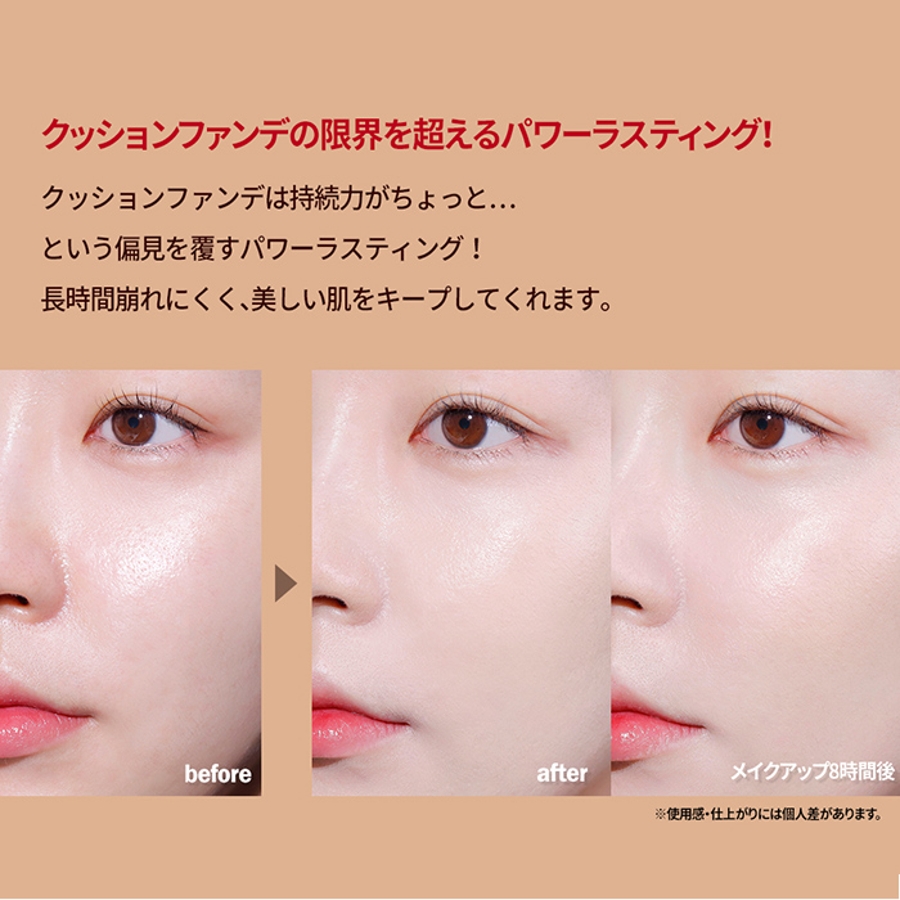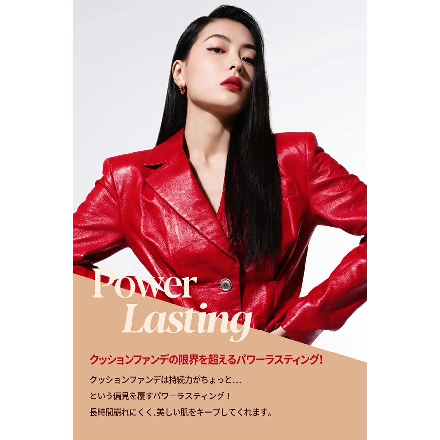 クッションファンデは持続力がちょっと…という偏見を覆すパワーラスティング!長時間崩れにくく、美しい肌をキープしてくれます。