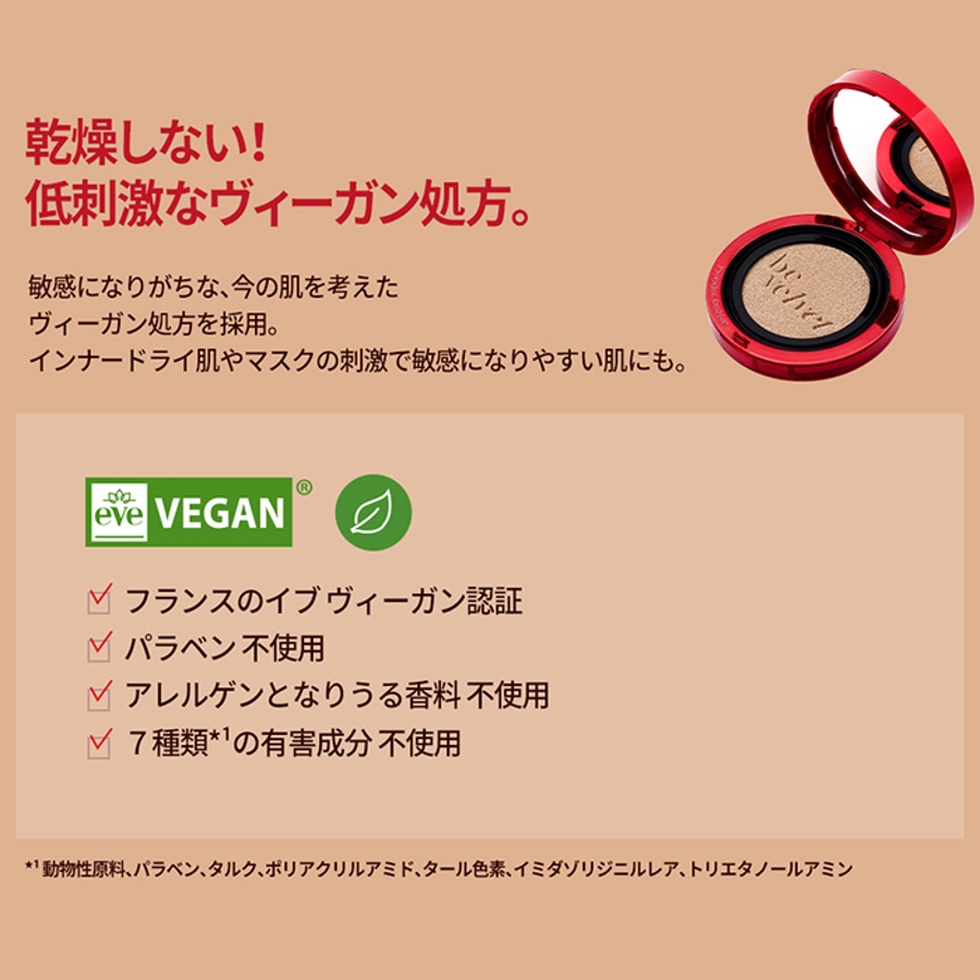 乾燥しない!低刺激なヴィーガン処方。敏感になりがちな、今の肌を考えたヴィーガン処方を採用。インナードライ肌やマスクの刺激で敏感になりやすい肌にも。