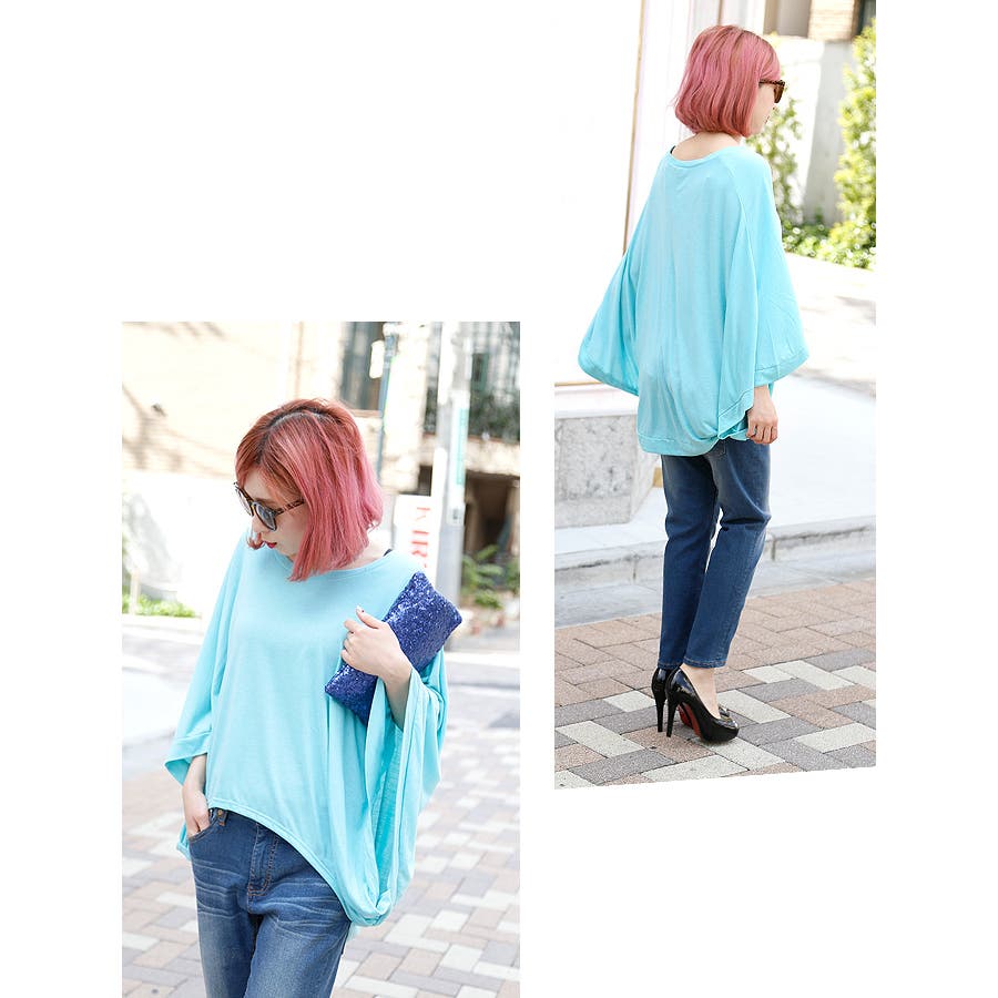注意点:ドルマンスリーブです。前後で若干着丈の長さが違います。