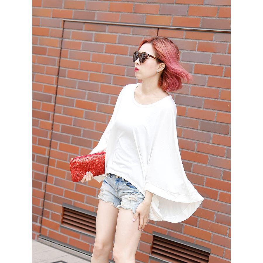 注意点:袖口が大きくひらいている為、キャミソール等インナー着用必須です。
