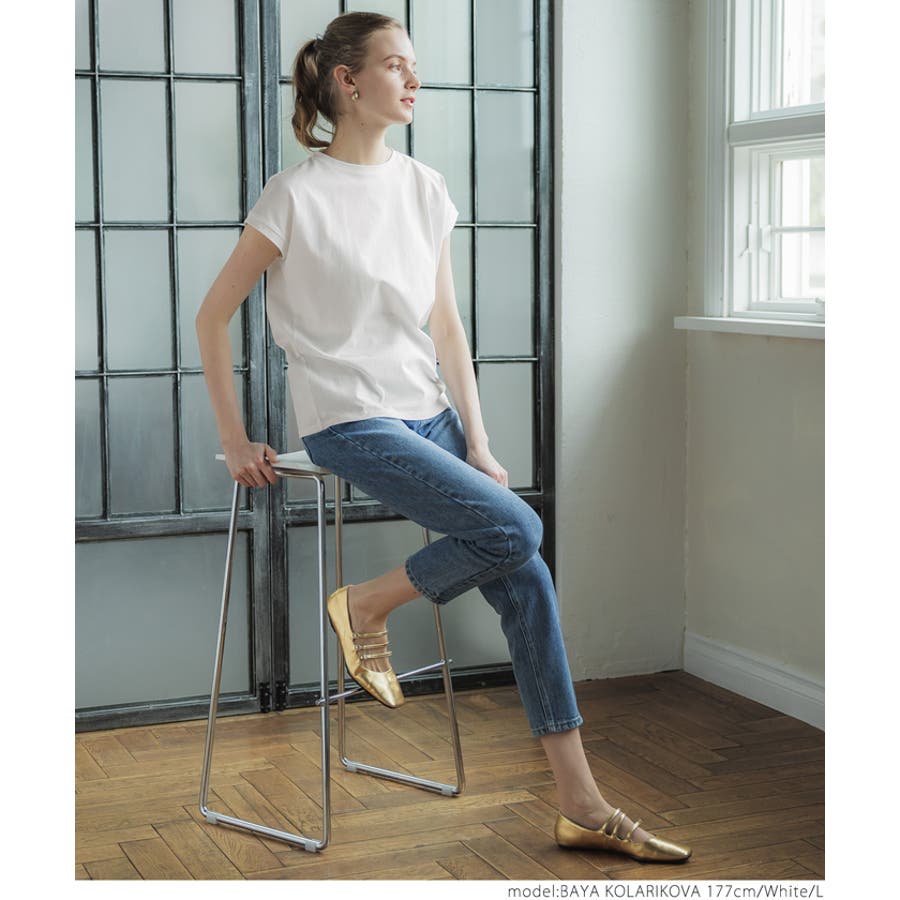 フレンチスリーブでスッキリとした印象のコットンカットソー。