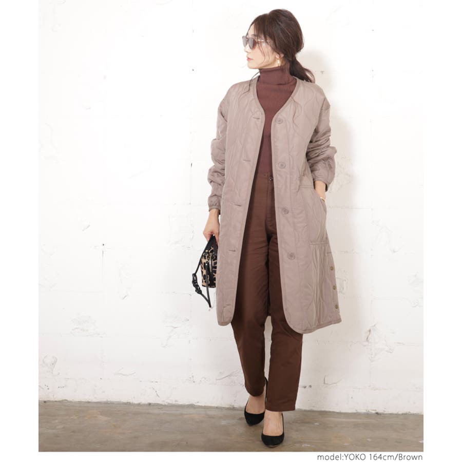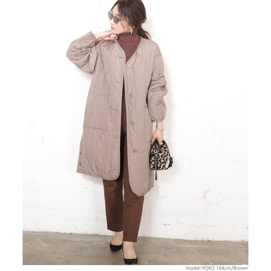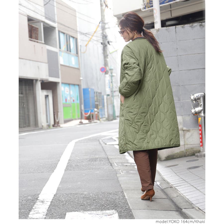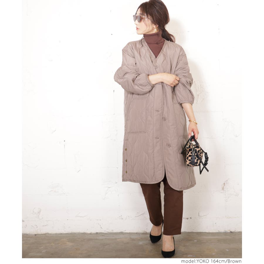 サイドボタンロング丈中綿キルティングコート yokoさん着用(アウター 長袖