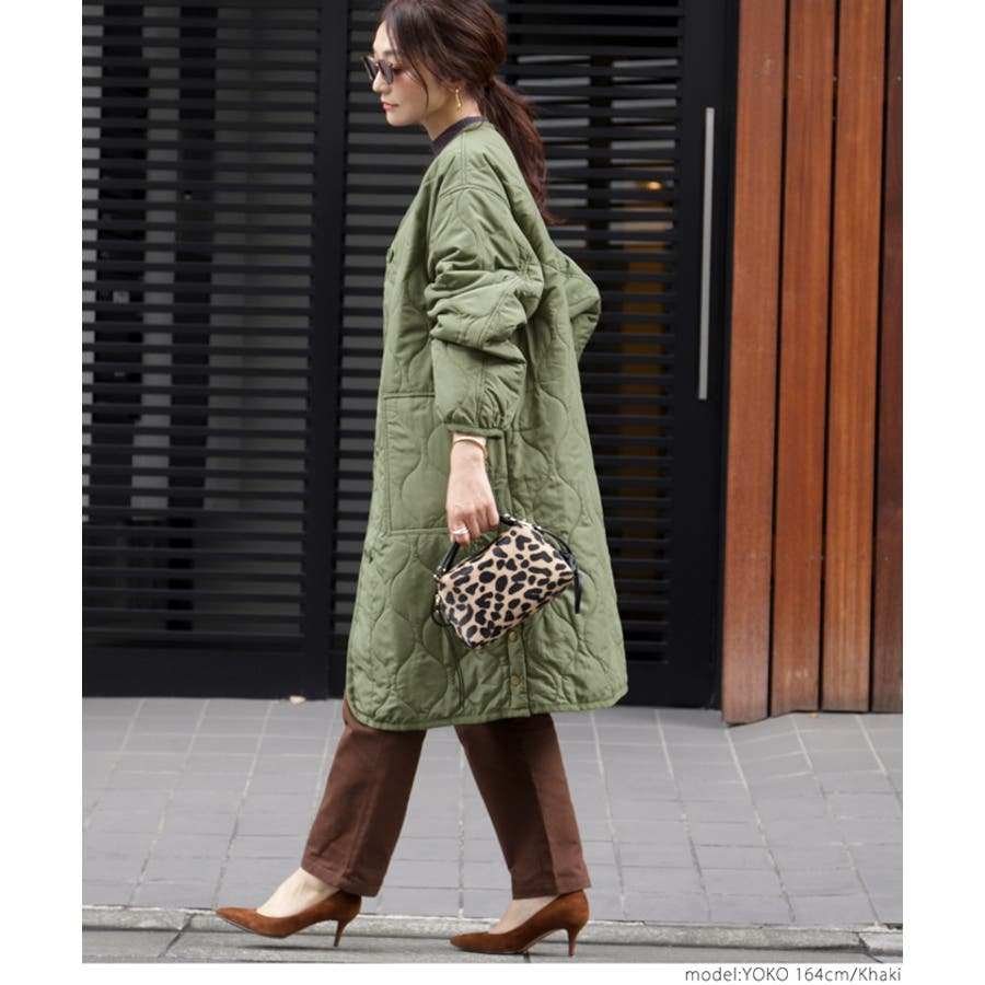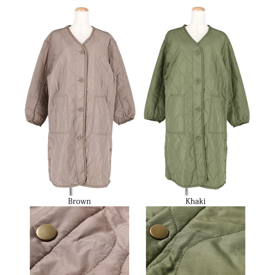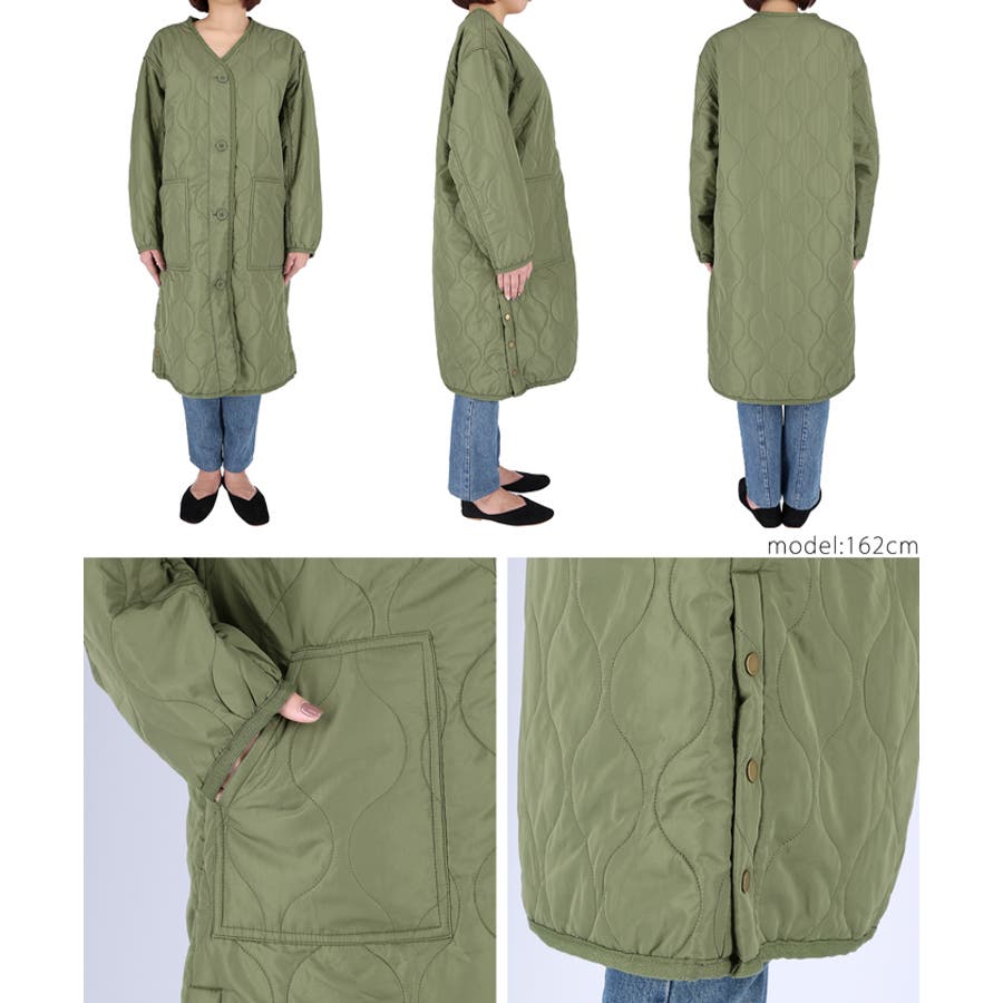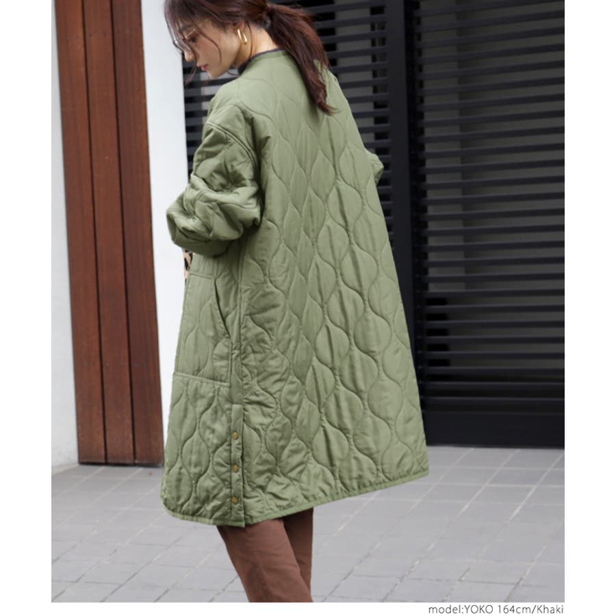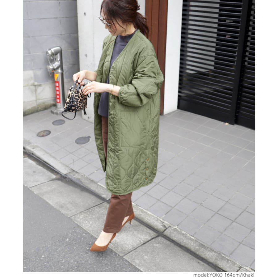 サイドボタンロング丈中綿キルティングコート yokoさん着用(アウター 長袖