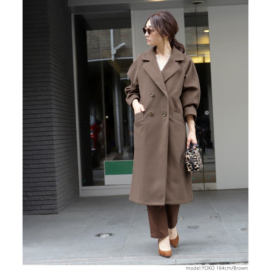 ラグランスリーブメルトンダブルコート yokoさん着用(ロングコート チェスター…