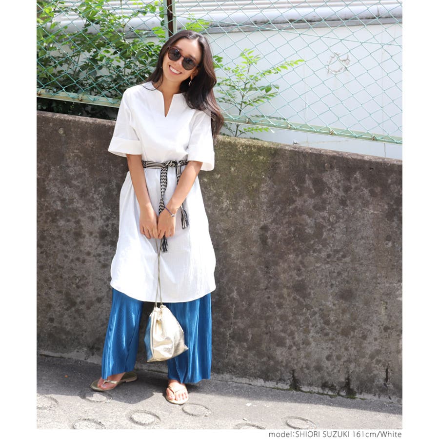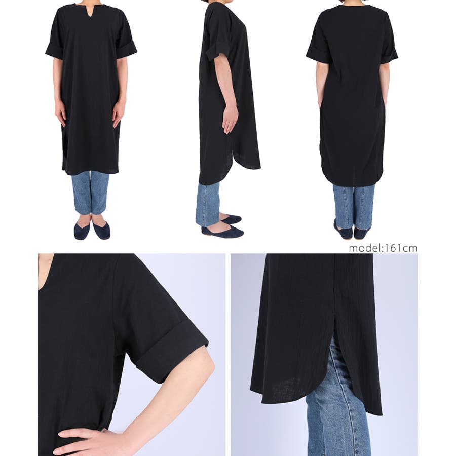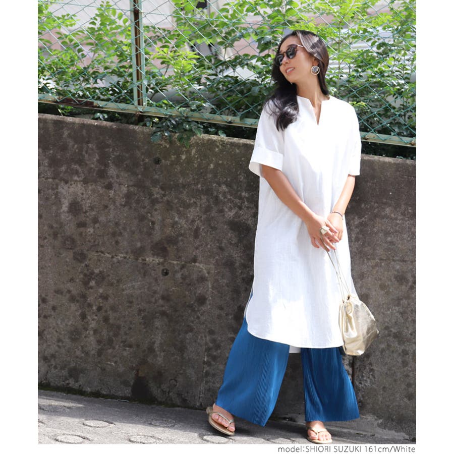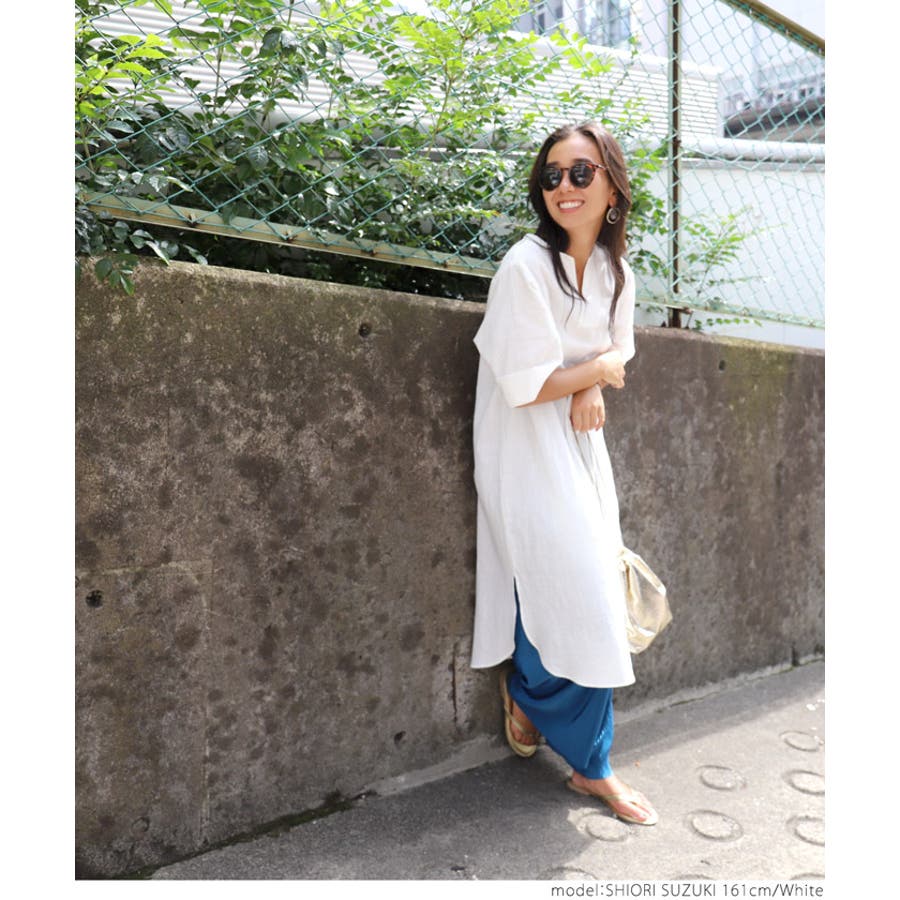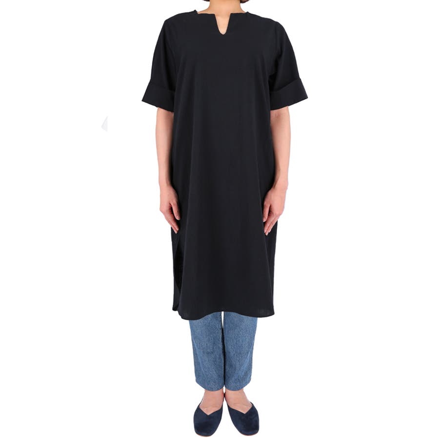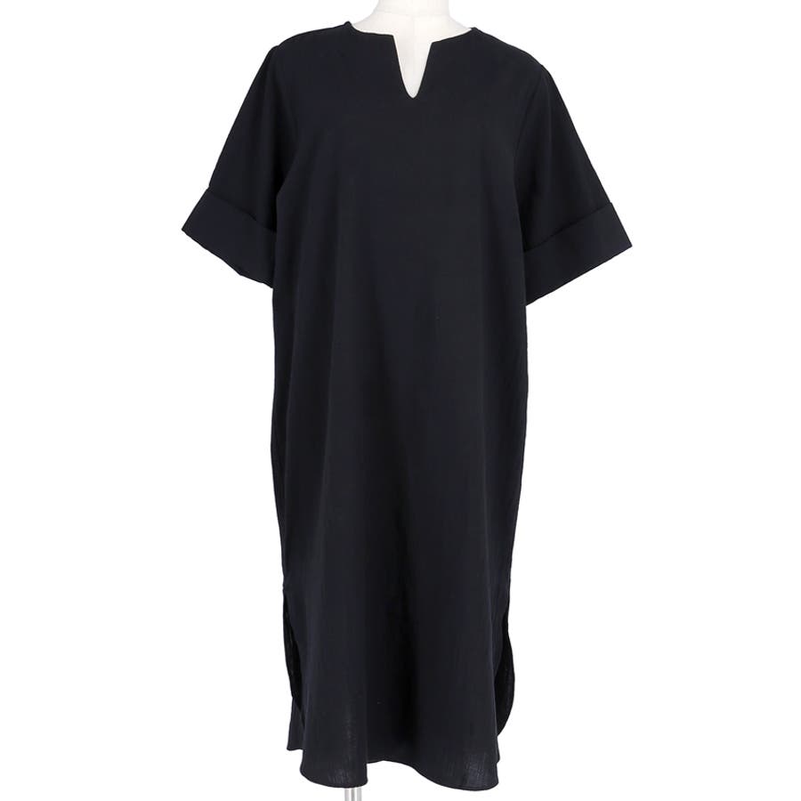 サイドスリットキーネックコットンワンピース 鈴木詩織さん着用(ロングワンピース …