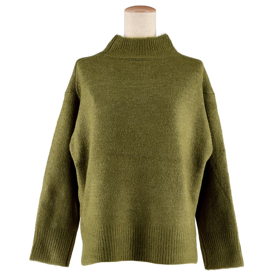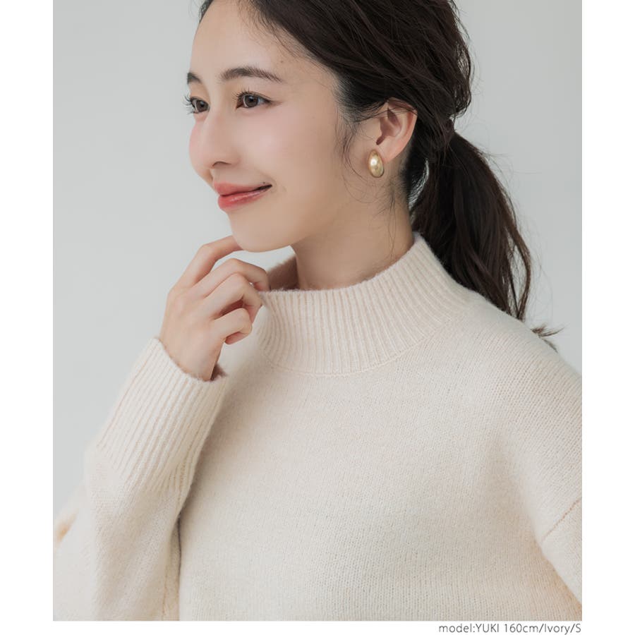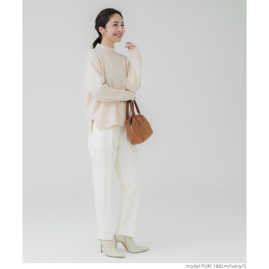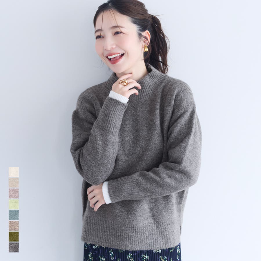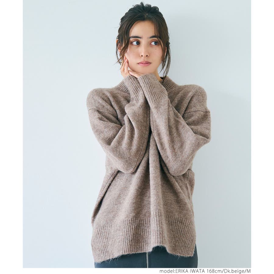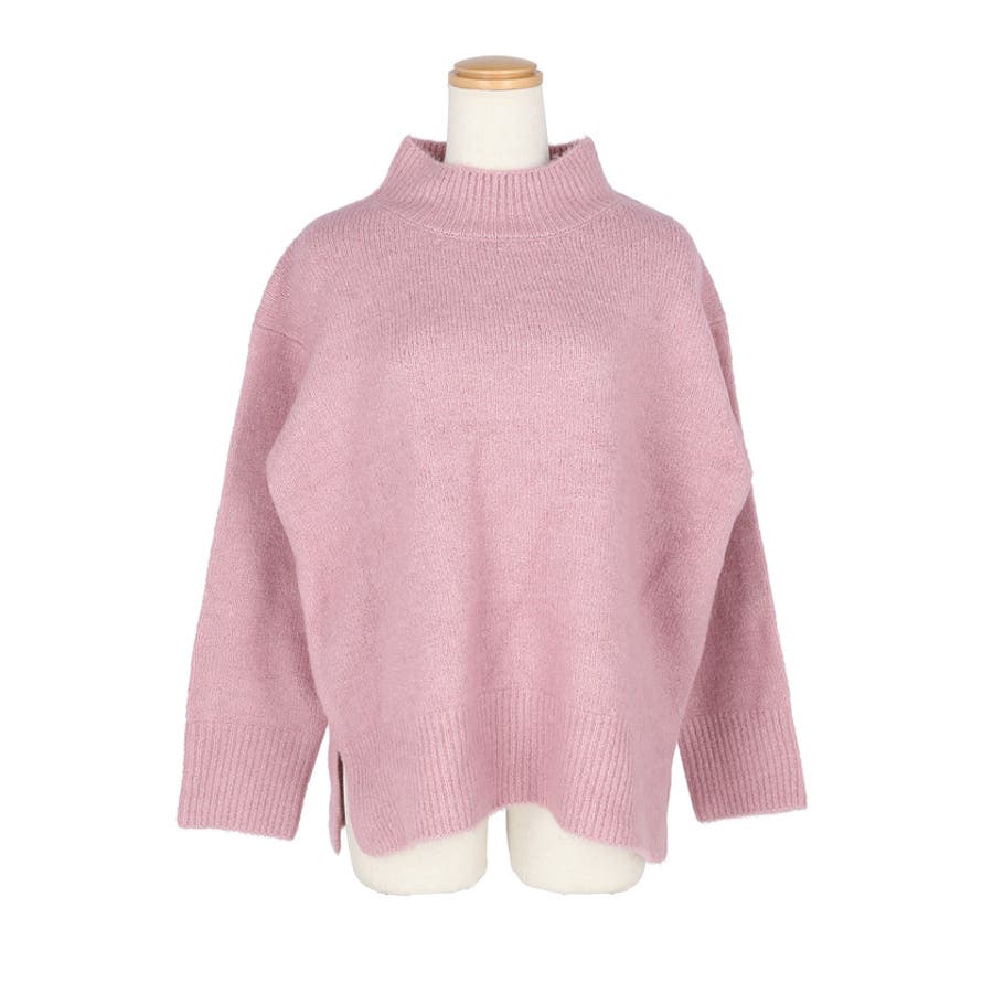 トップス プルオーバー セーター サイドスリット モックネック ドロップショルダー ミディアム丈 起毛 ストレッチ 長袖 無地 24aw コカ COCA coca COCA coca