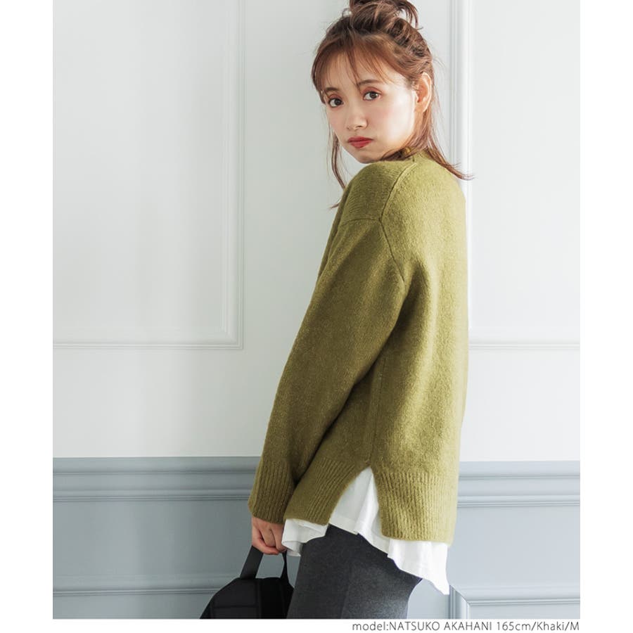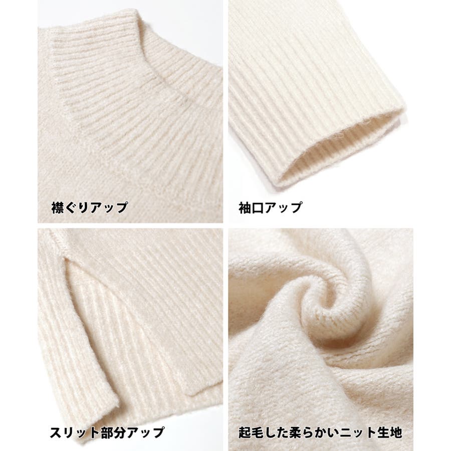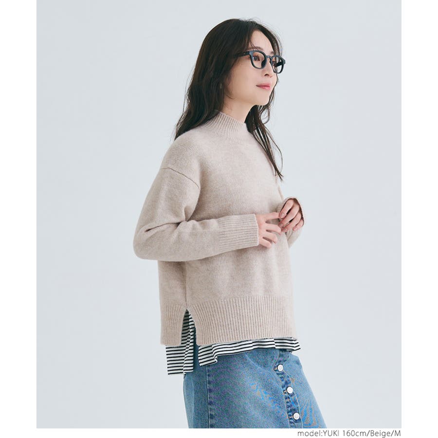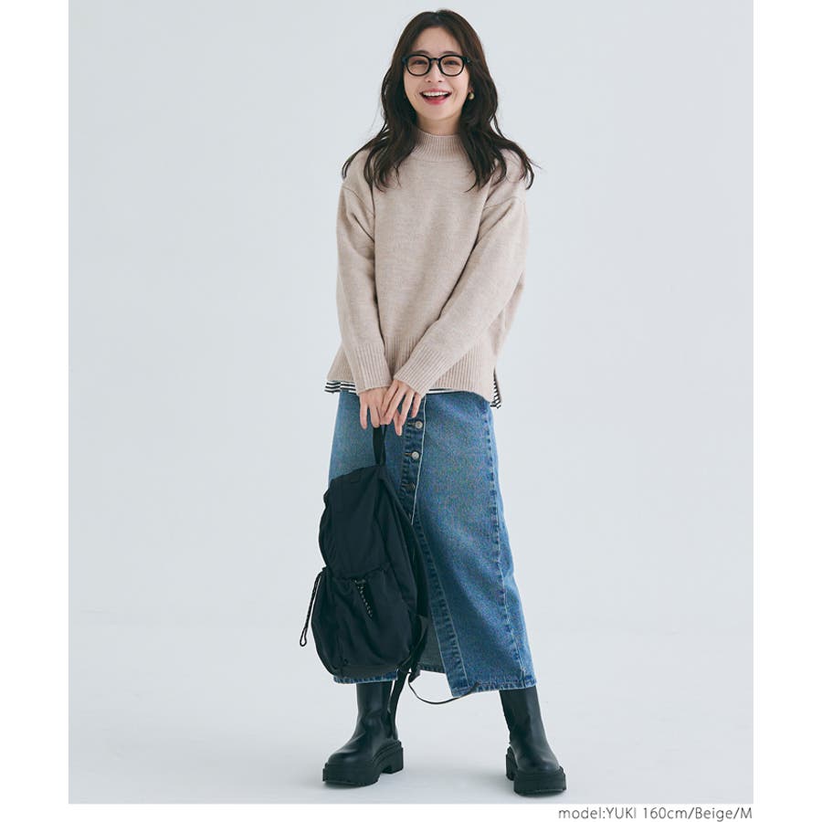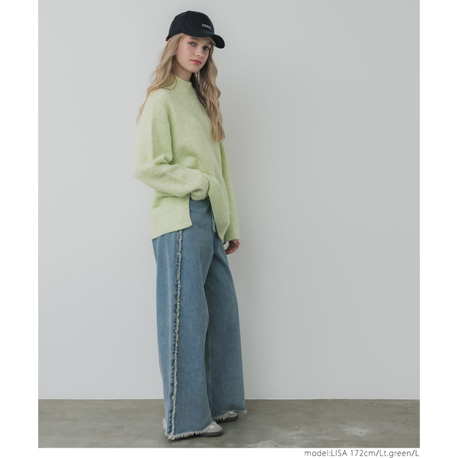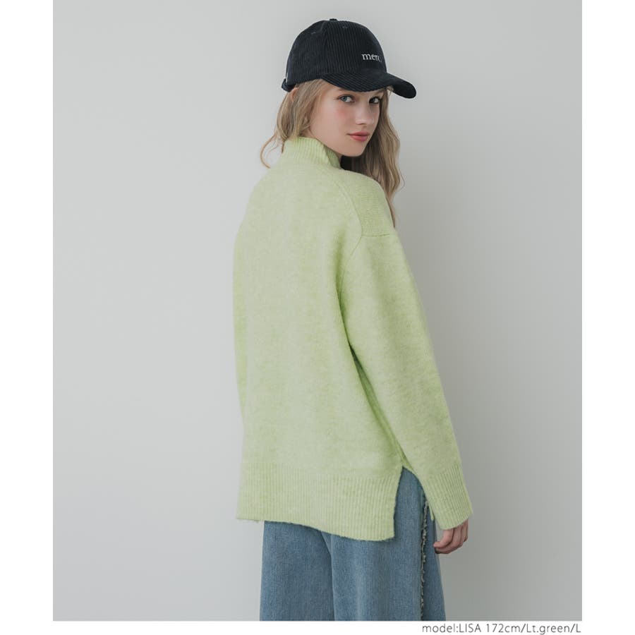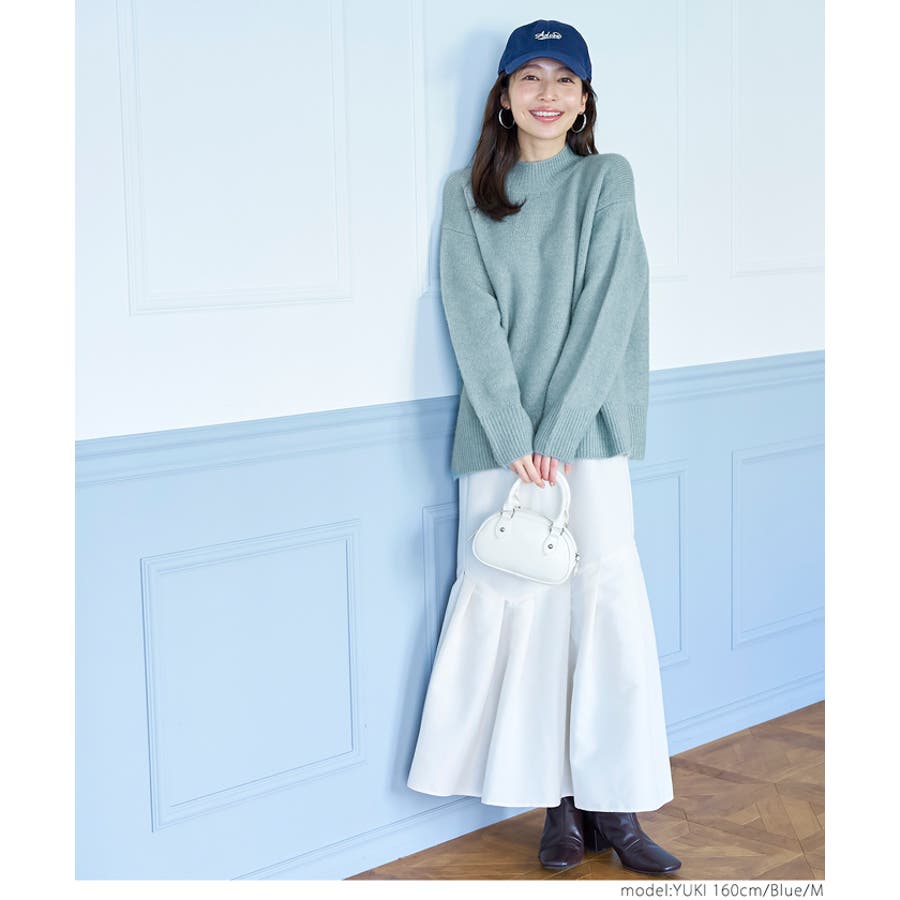 トップス プルオーバー セーター サイドスリット モックネック ドロップショルダー ミディアム丈 起毛 ストレッチ 長袖 無地 24aw コカ COCA coca COCA coca