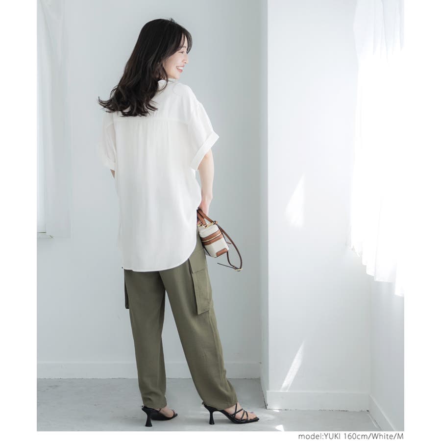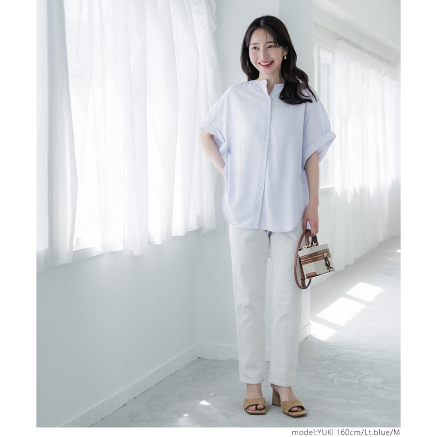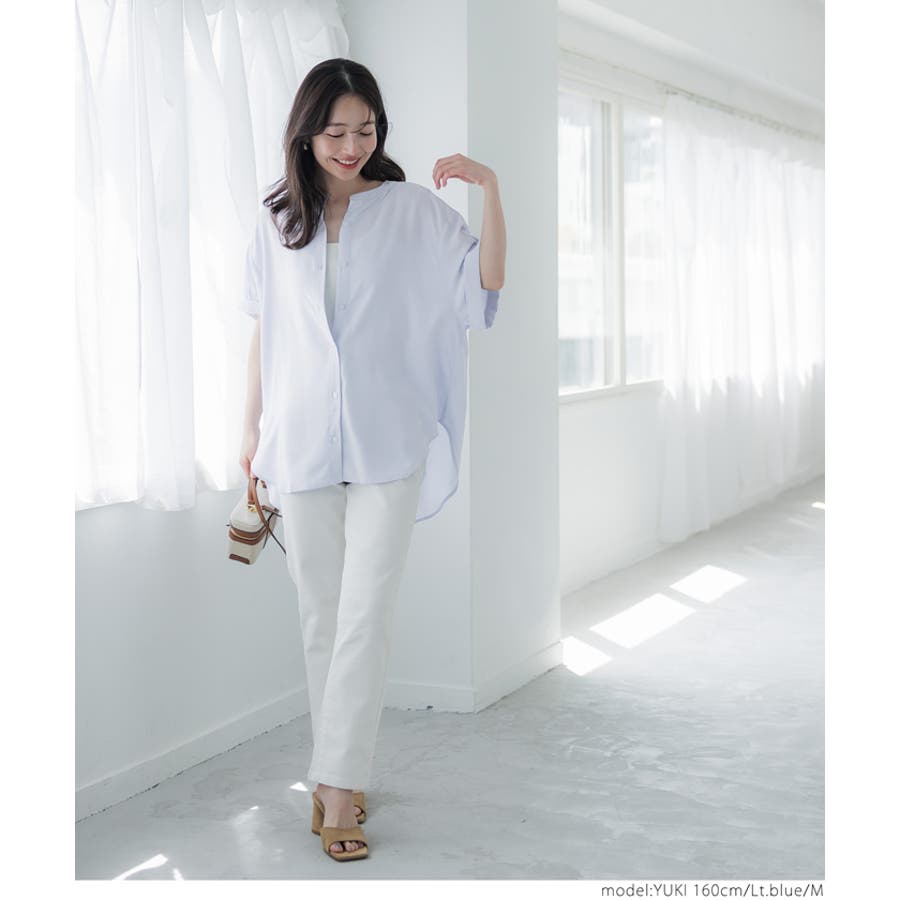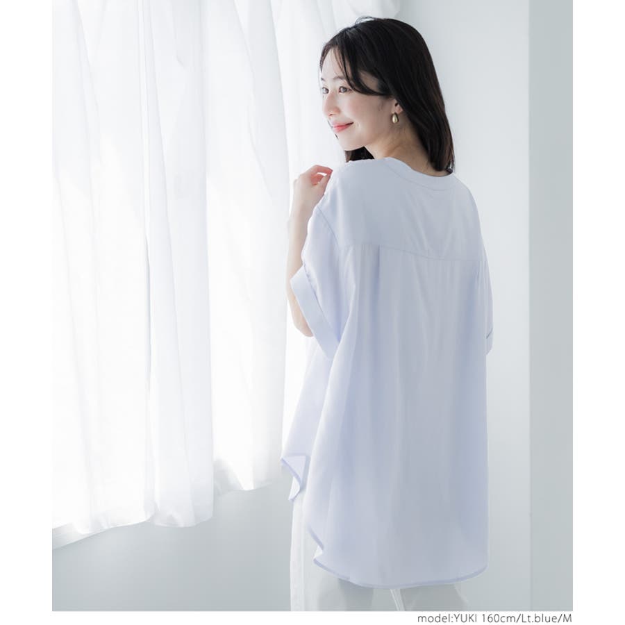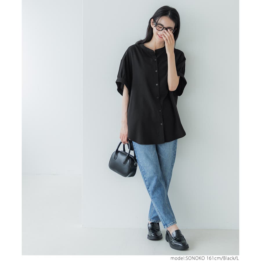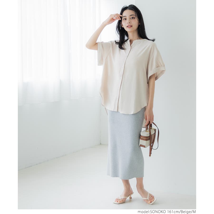 ブラウス レディース レーヨン スキッパー 袖ギャザー 羽織り シャツ 前後差 ミディアム丈 無地 薄手 半袖 きれいめ トップス バンドカラーシャツ 前開き ヴィンテージレーヨン 半袖ブラウス ラウンドテール フロントボタン 光沢感 ベーシック コカ COCA coca COCA coca