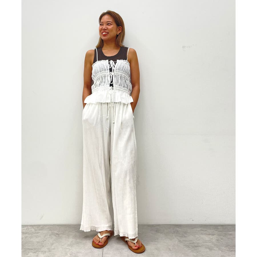 夏は一枚で、肌寒い季節にはジャケットなどの羽織とレイヤードしてヘルシーで大人っぽいスタイルに。