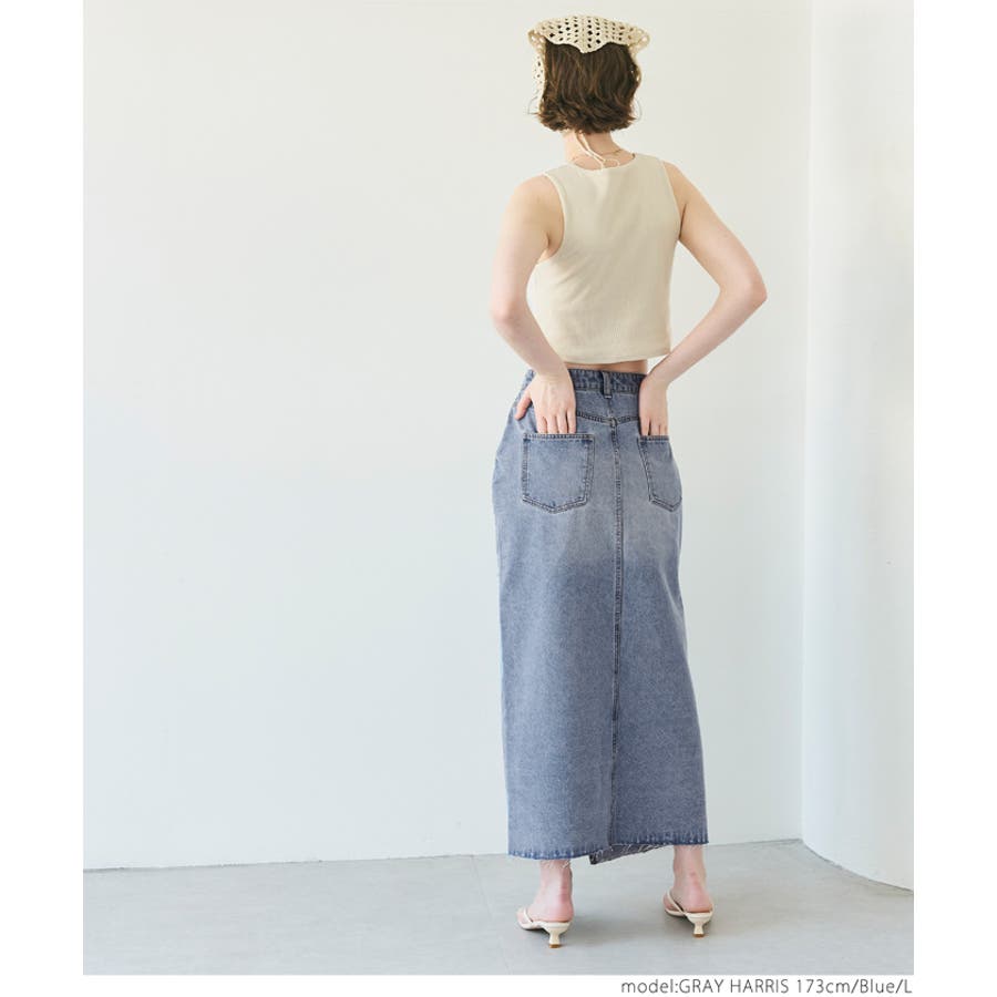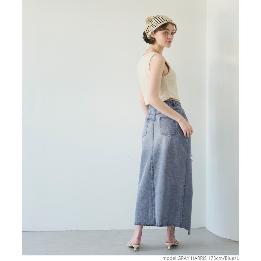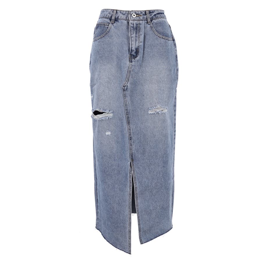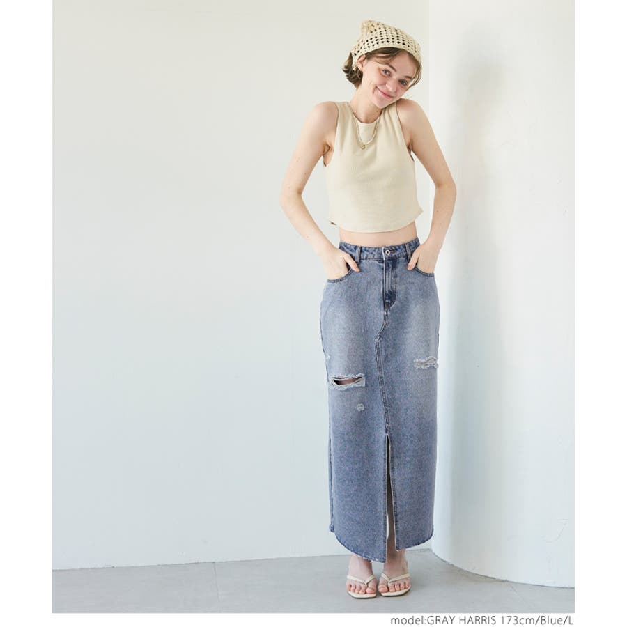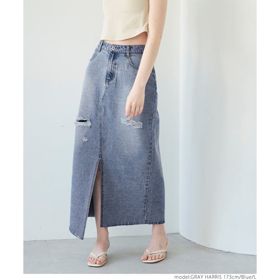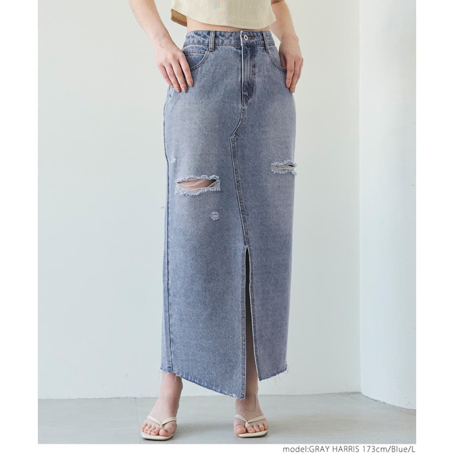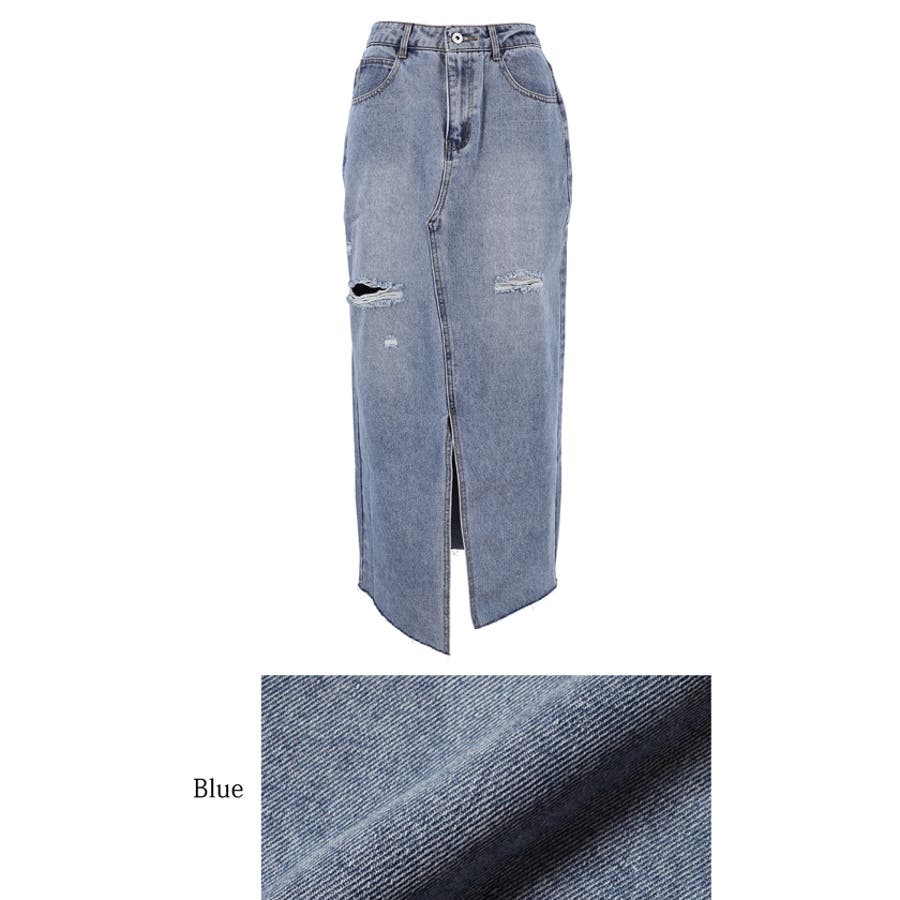 スカート レディース デニムスカート ダメージ加工 センタースリット Iライン ロング丈 ポケット 無地 ボトムス ダメージスカート デニム カットオフ クラッシュ スリット Iラインシルエット フロントボタン マキシ丈 カジュアル コカ COCA coca COCA coca
