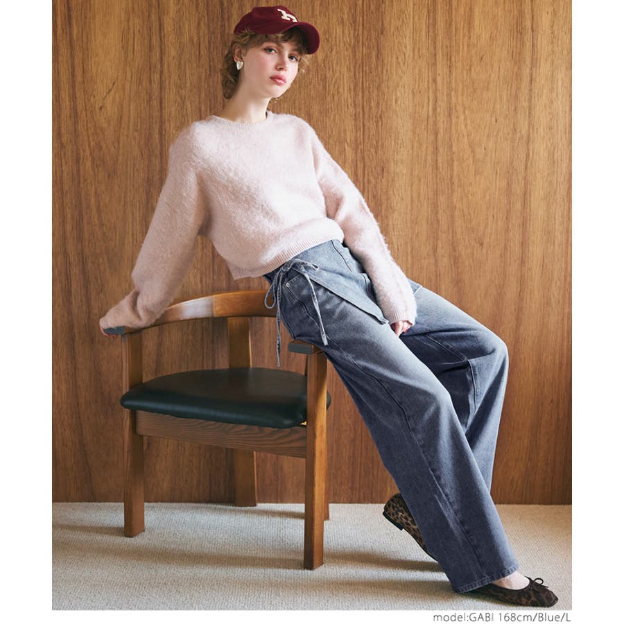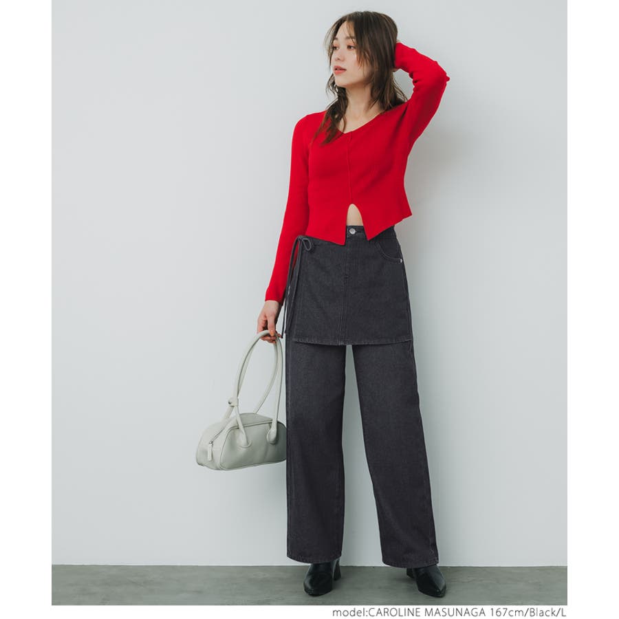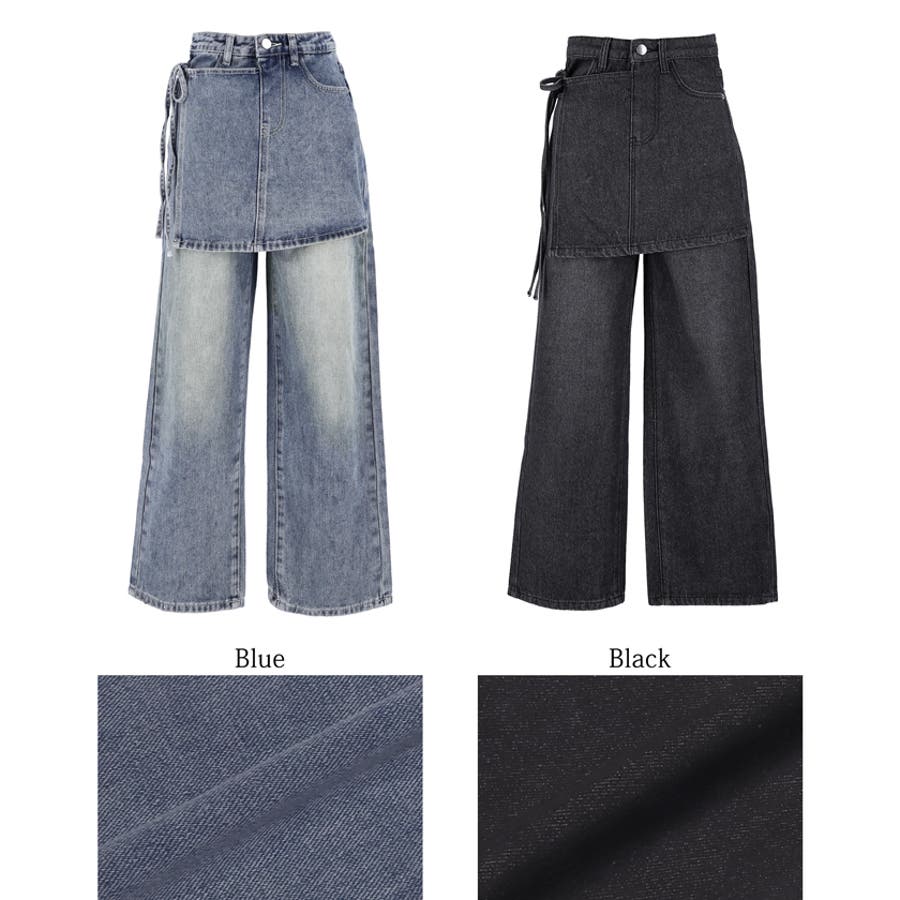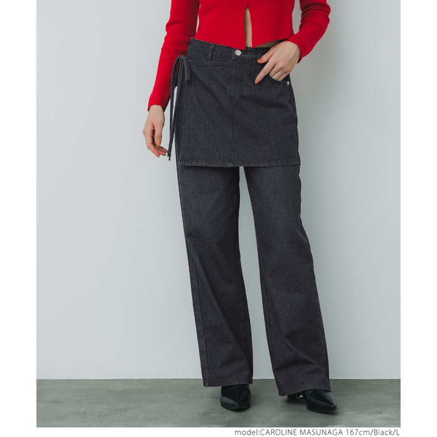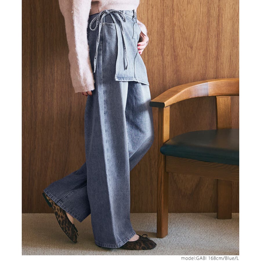 ボトムス パンツ デニム リボン レイヤード ポケット 前ボタン シンプル カジュアル GC 24aw コカ COCA coca COCA coca