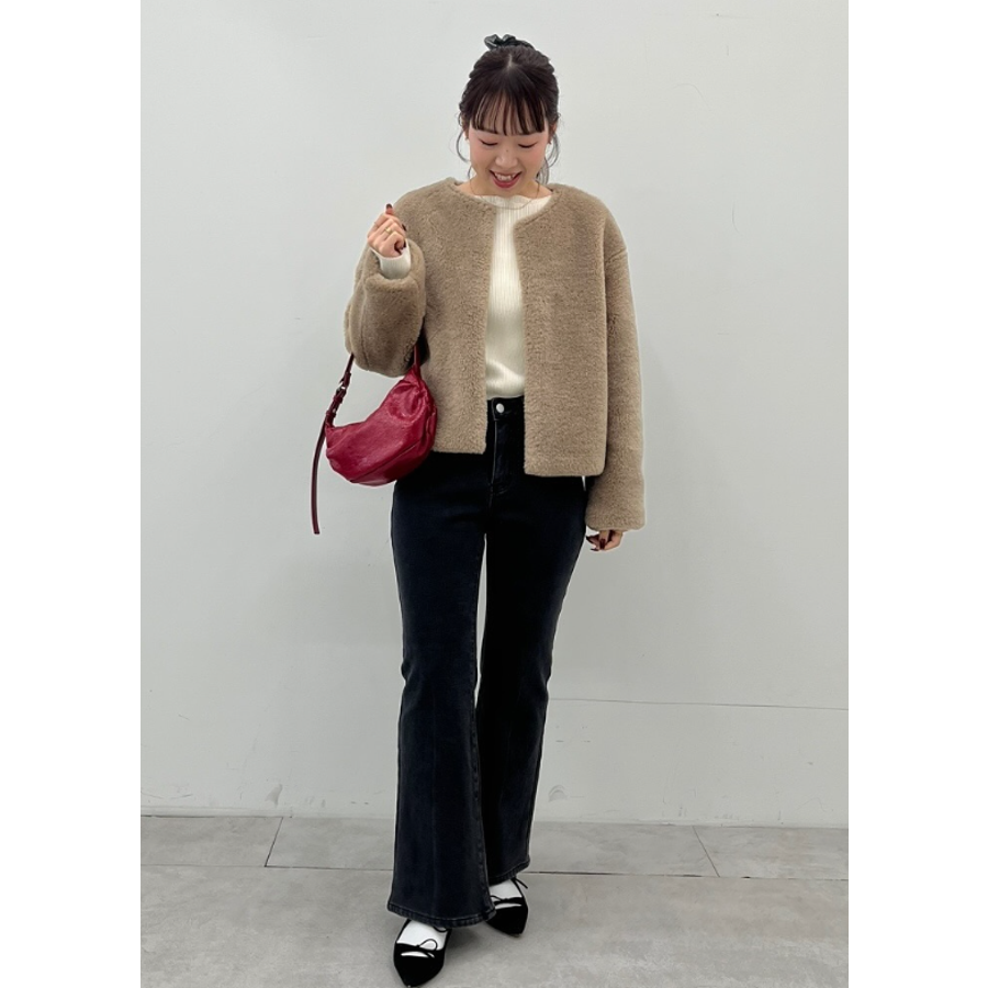 アウター ブルゾン ノーカラー 長袖 裏地 ファー 前開き フェイクファー ポケット ウォッシャブル シンプル 25aw コカ COCA coca COCA coca おしゃれ 可愛い きれいめ 秋 秋服 冬 冬服 おとな 大人 女性ファッション 韓国 カジュアル プチプラ 10代 20代 30代 40代 50代 オフィス ホーム シンプル