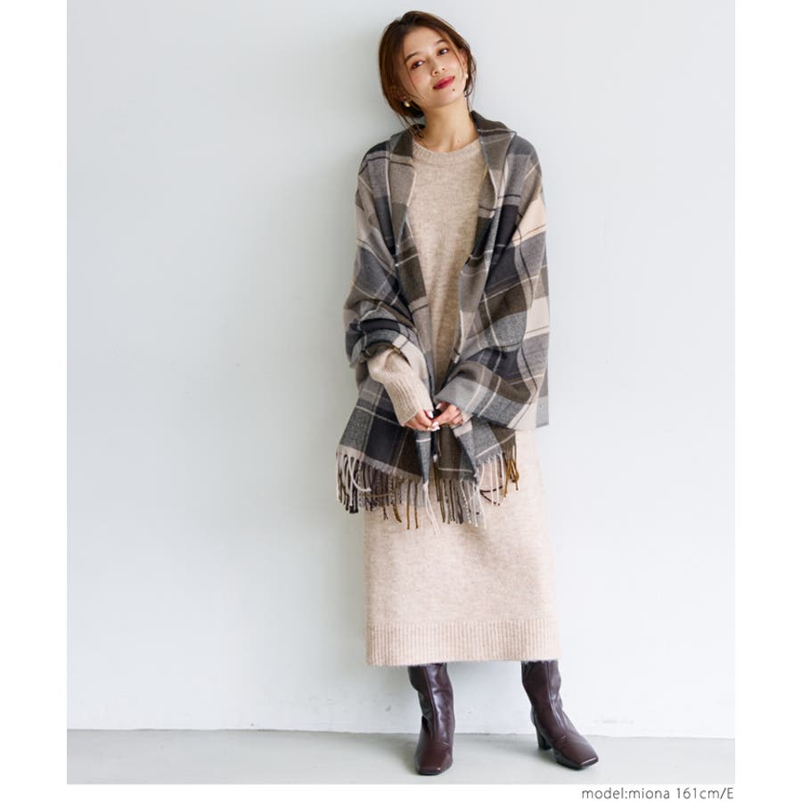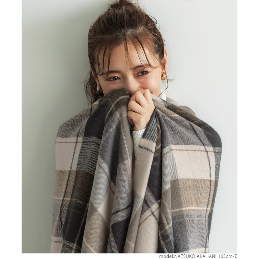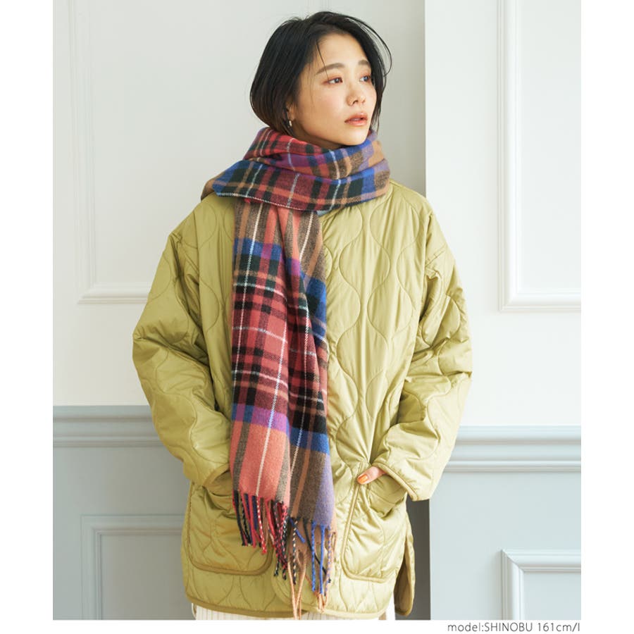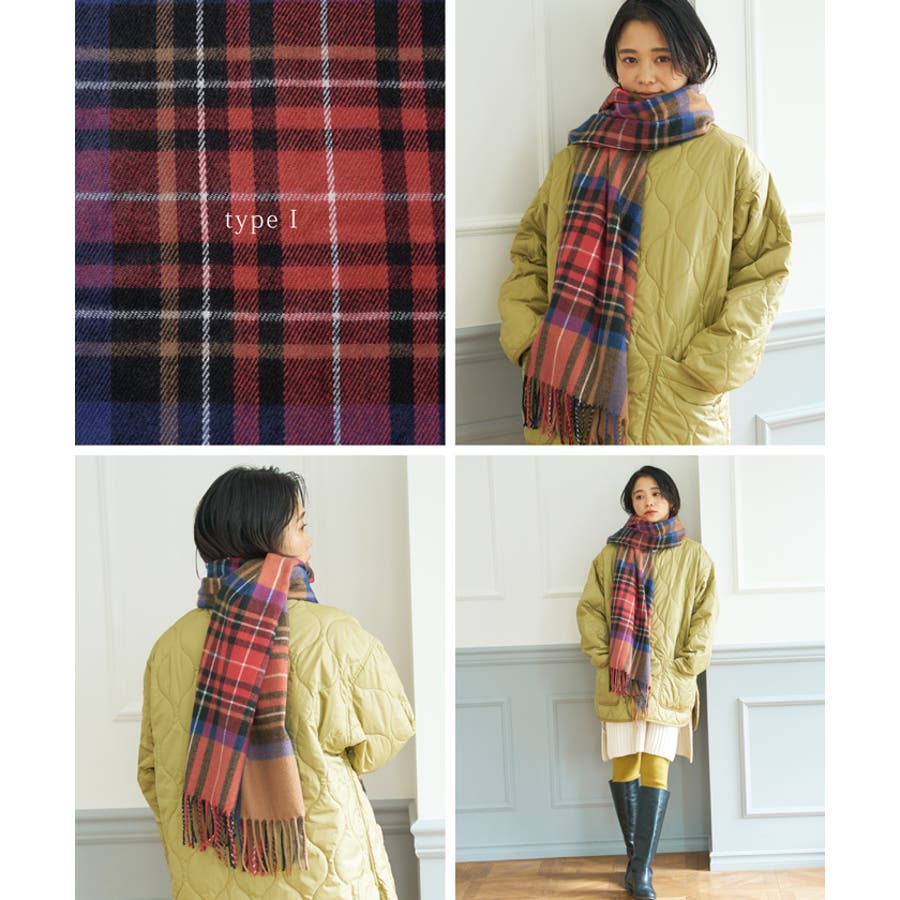 シーズンらしいチェック柄マフラー。