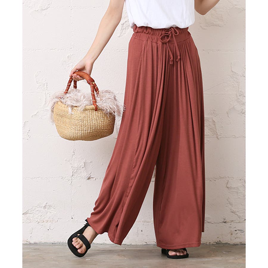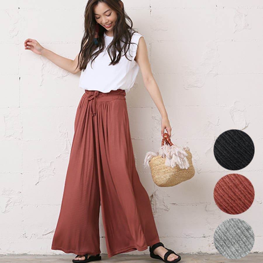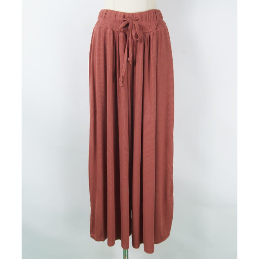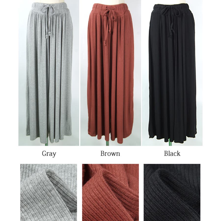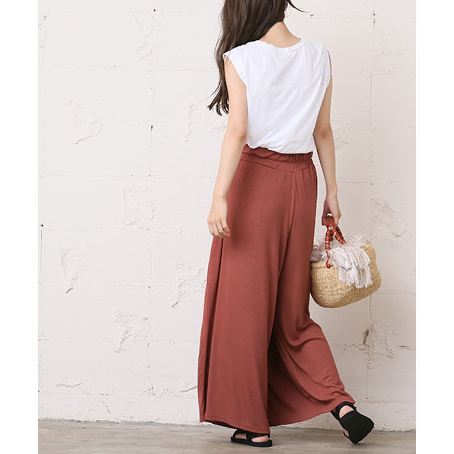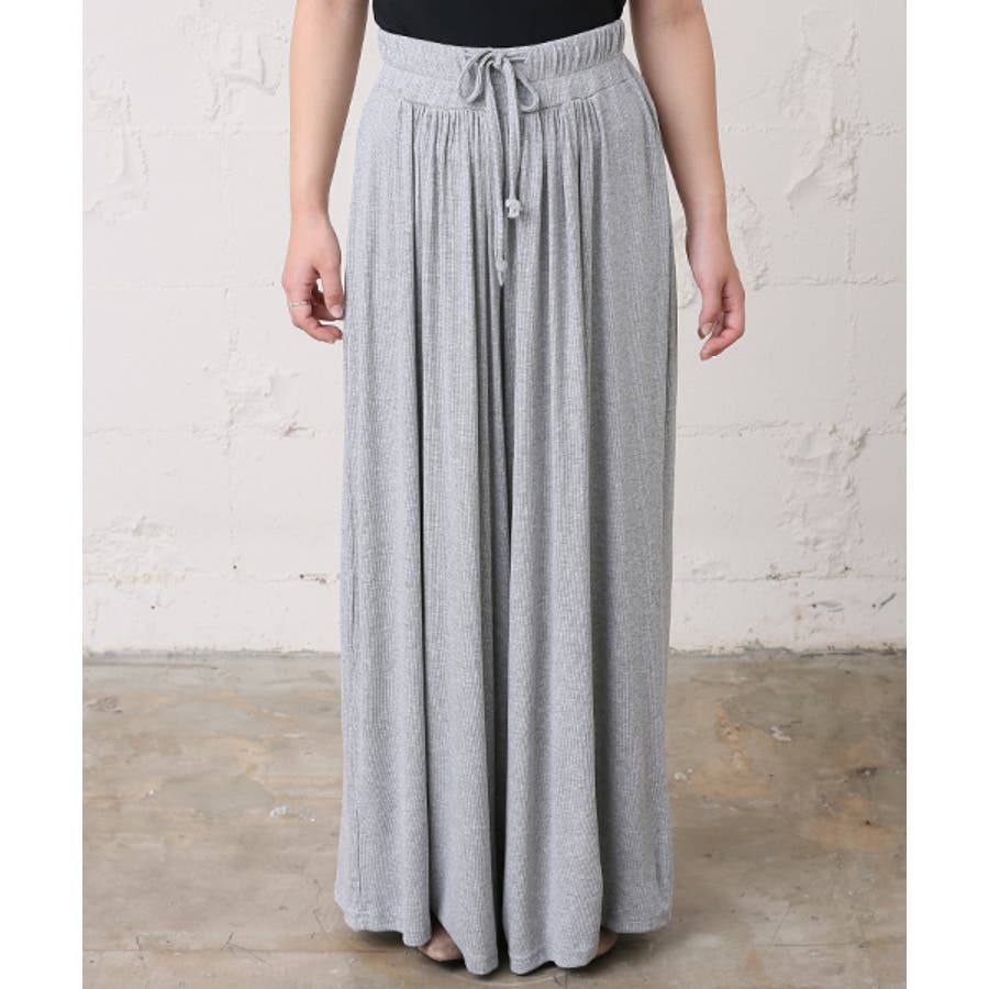 柔らかリブロングワイドパンツ 阿久津ゆりえさん着用(ガウチョパンツ スカーチョ