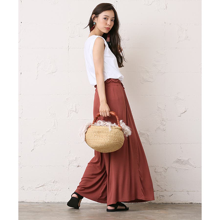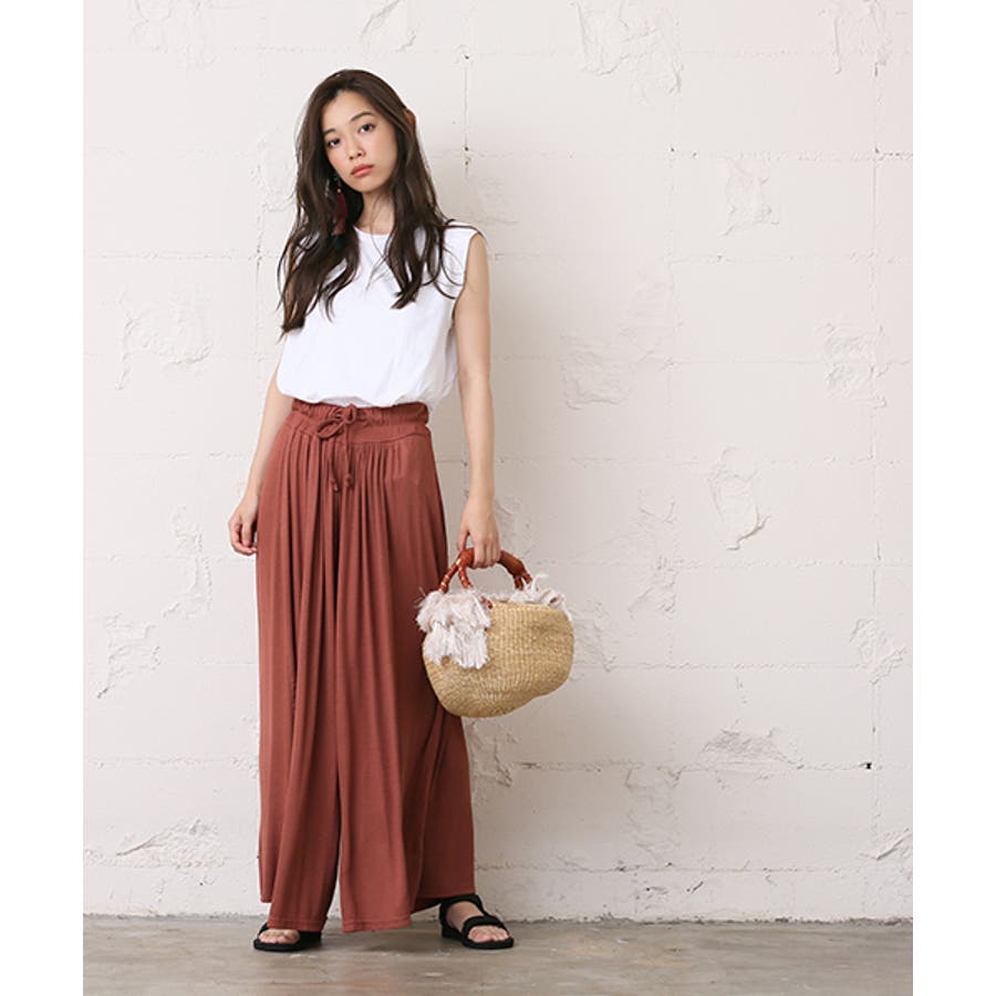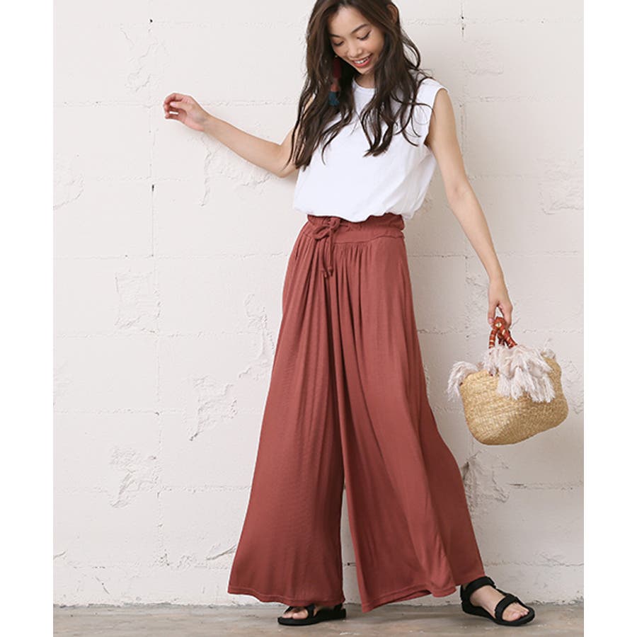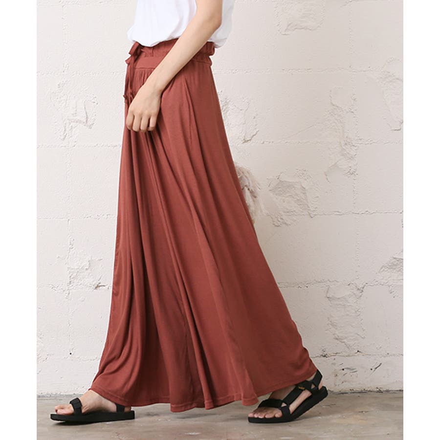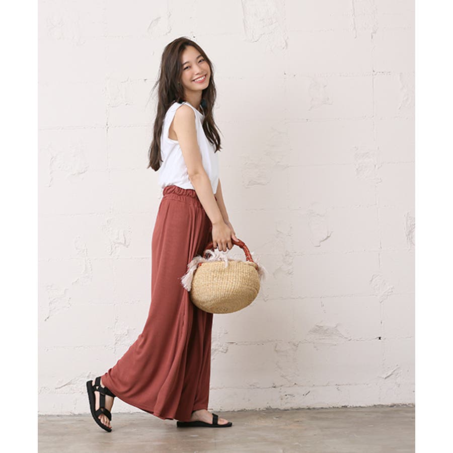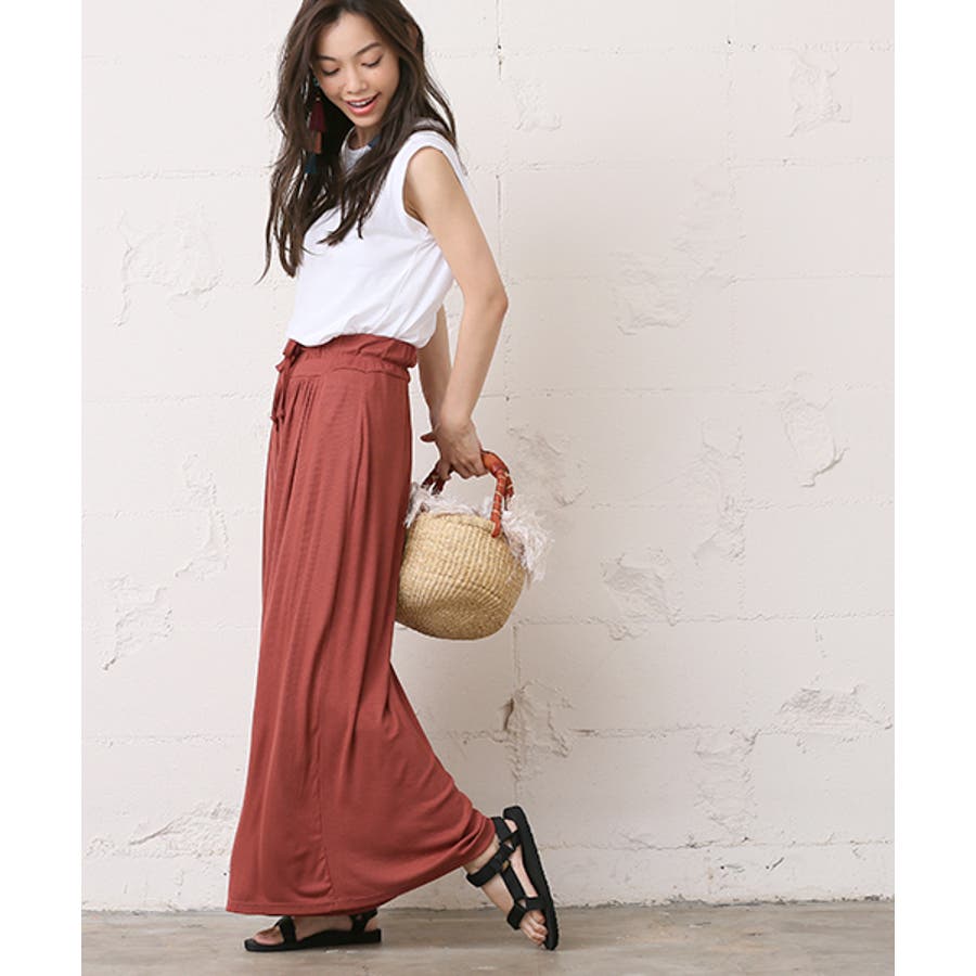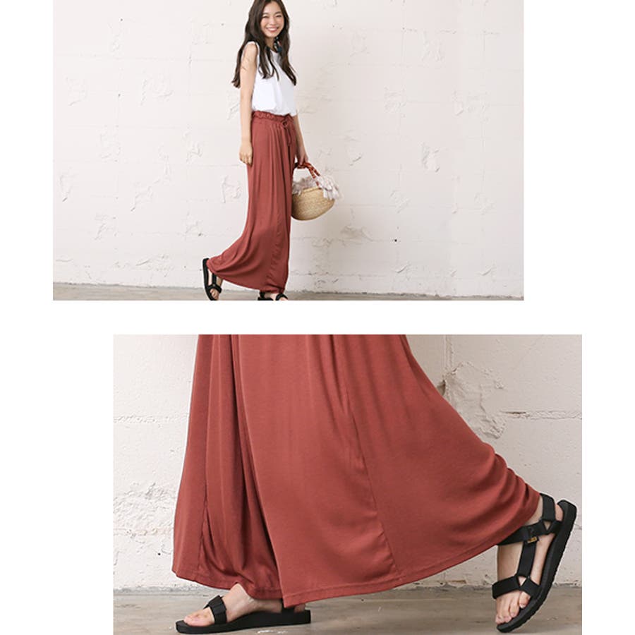 柔らかリブロングワイドパンツ 阿久津ゆりえさん着用(ガウチョパンツ スカーチョ