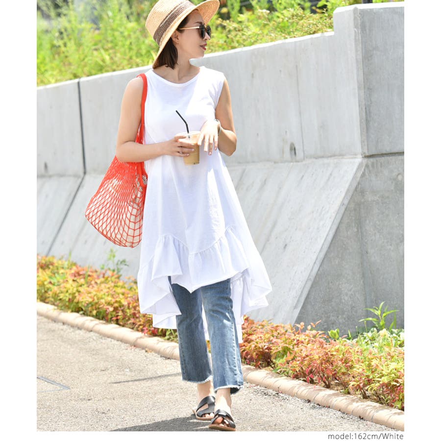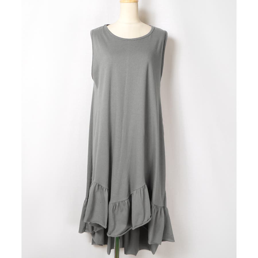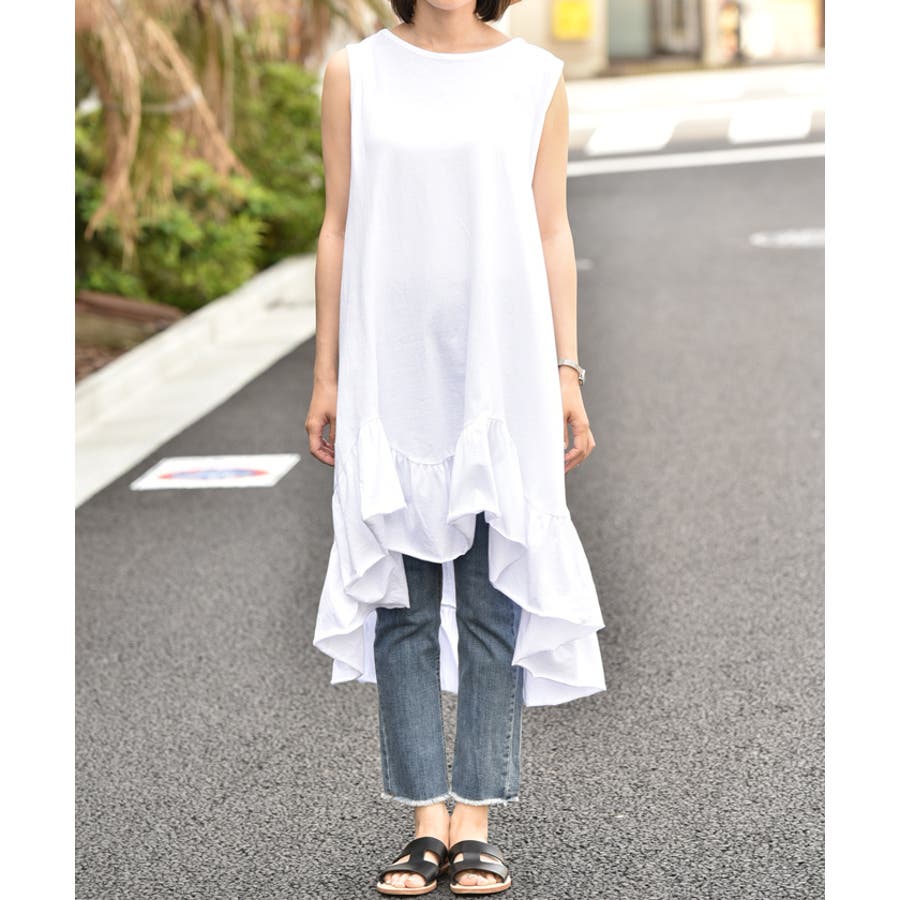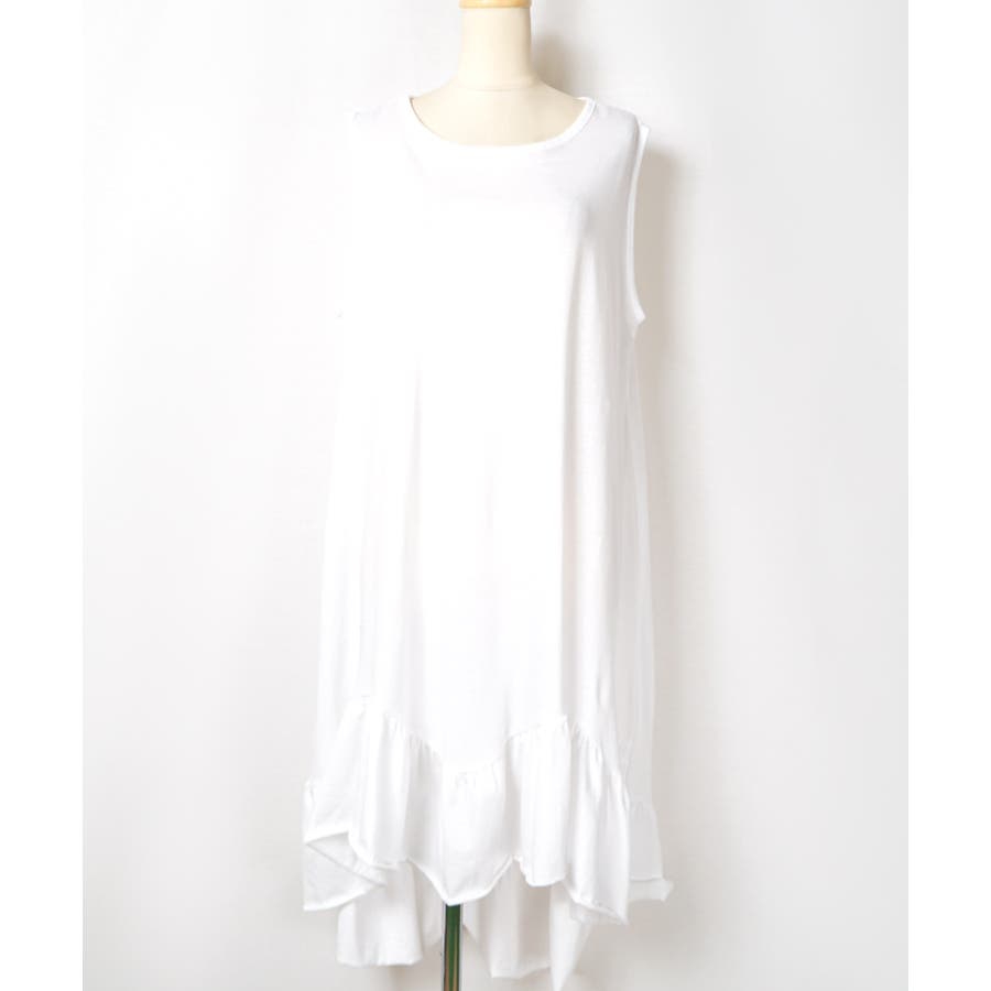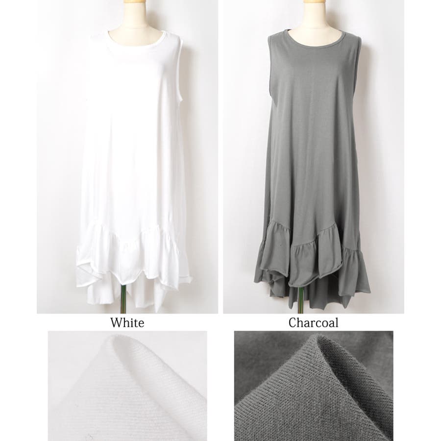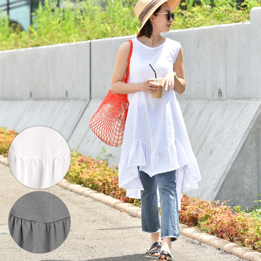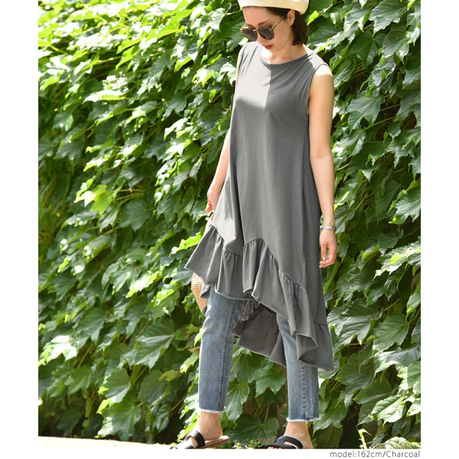 たっぷり裾フリルテールカットワンピース(ノースリーブ タンクトップ 切りっぱなし