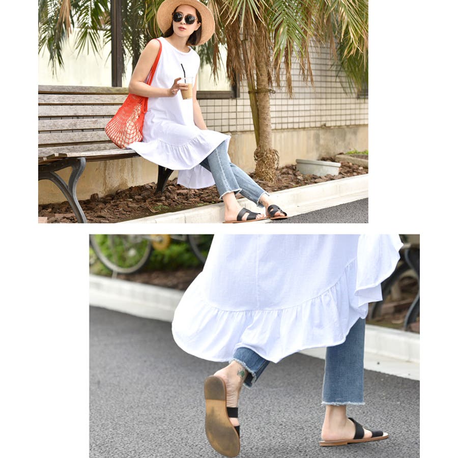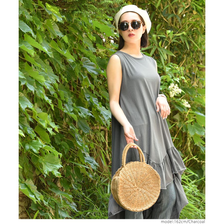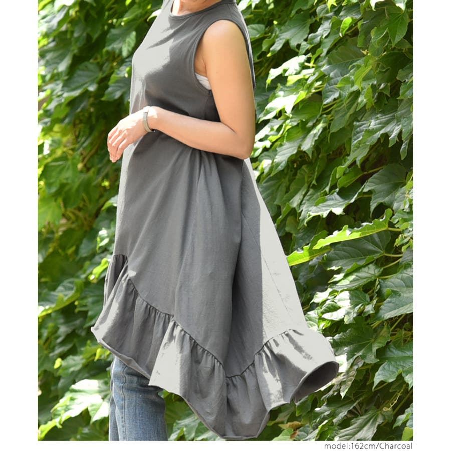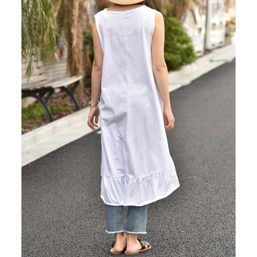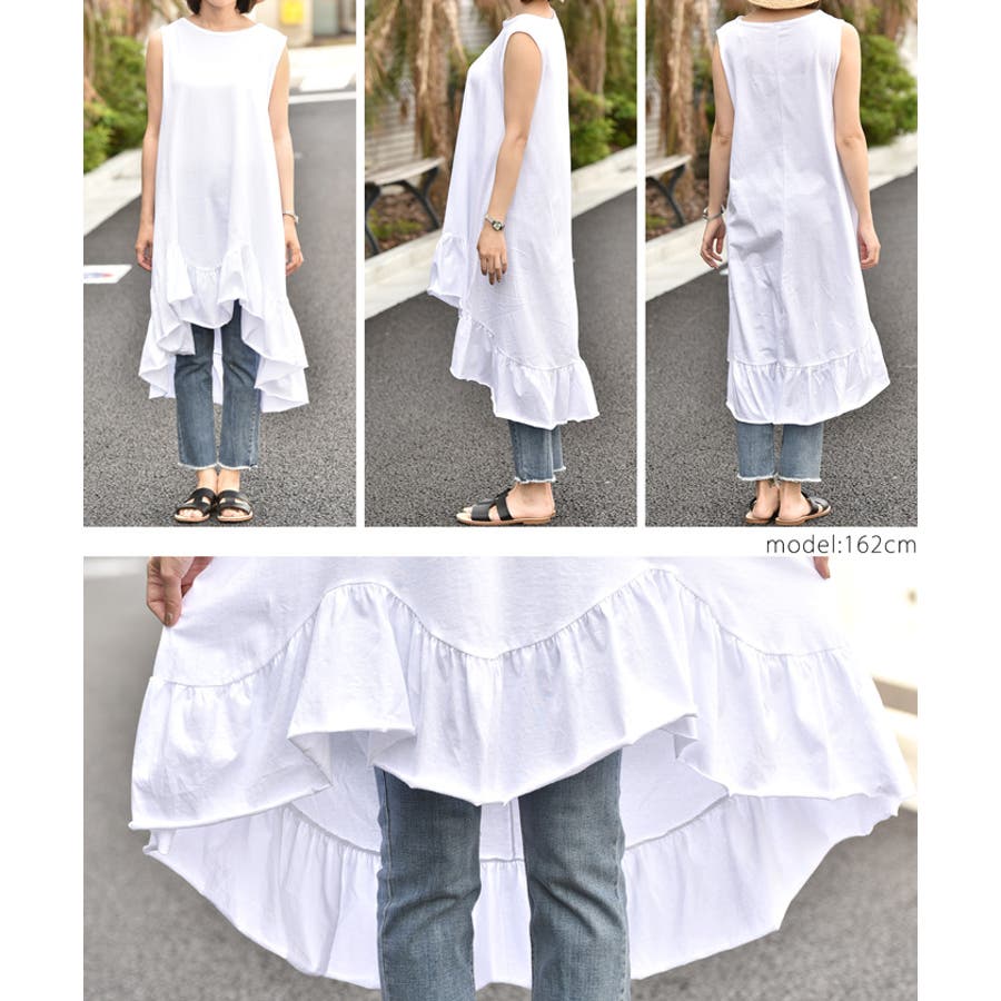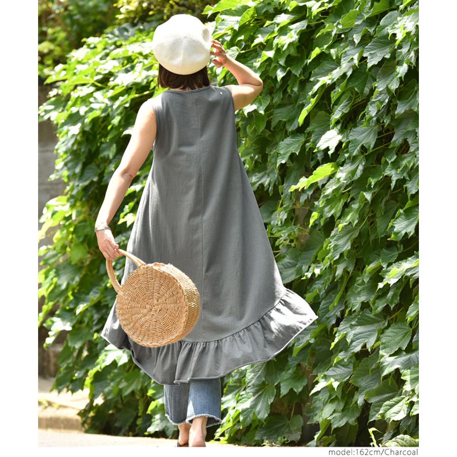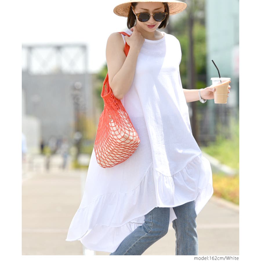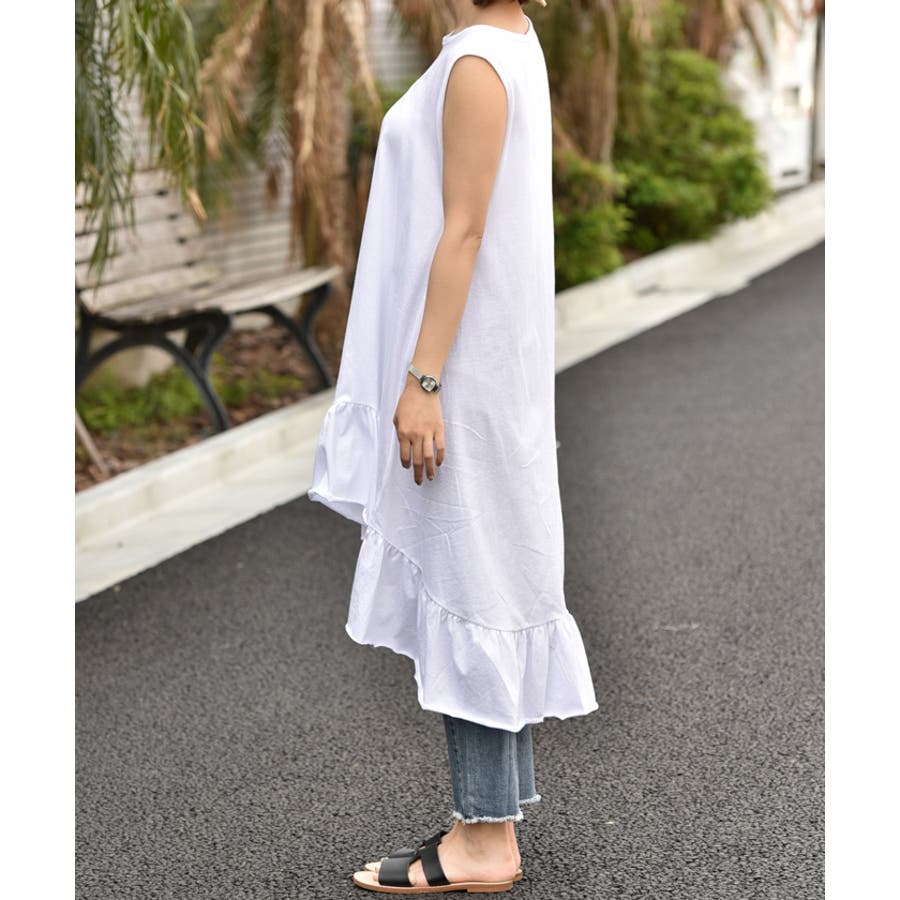 たっぷり裾フリルテールカットワンピース(ノースリーブ タンクトップ 切りっぱなし