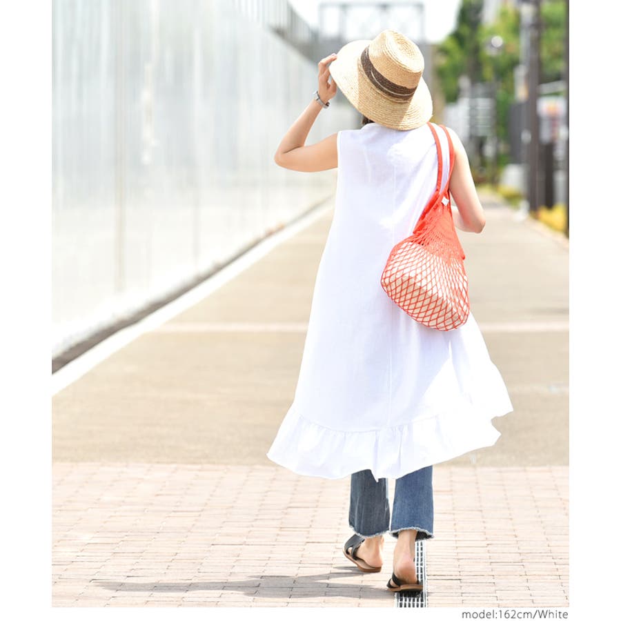 たっぷりの裾フリルがかわいらしいノースリーブワンピース