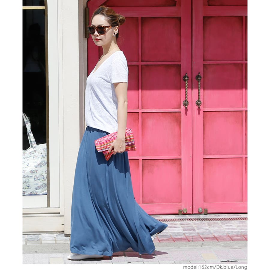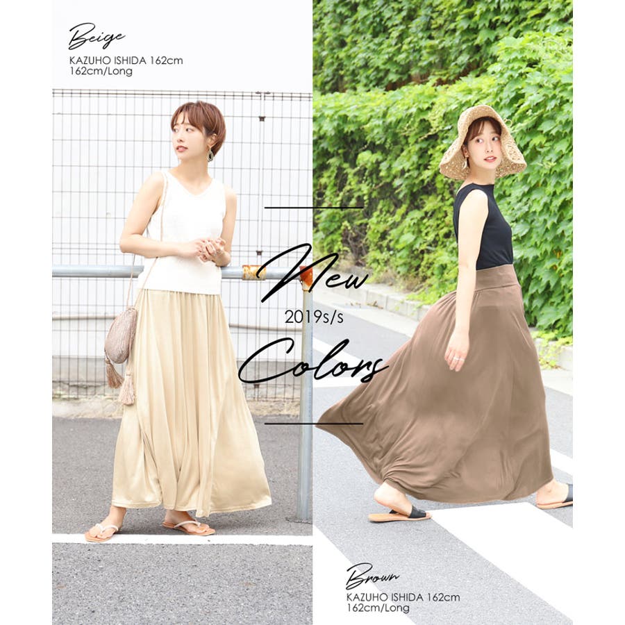 選べるカラバリが嬉しい◎落ち感フレアロングスカート。