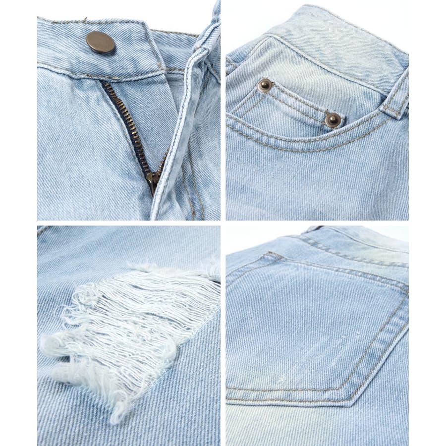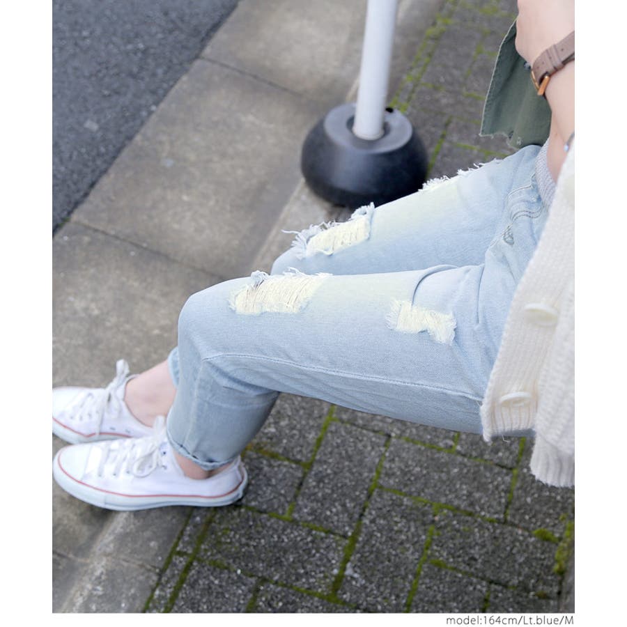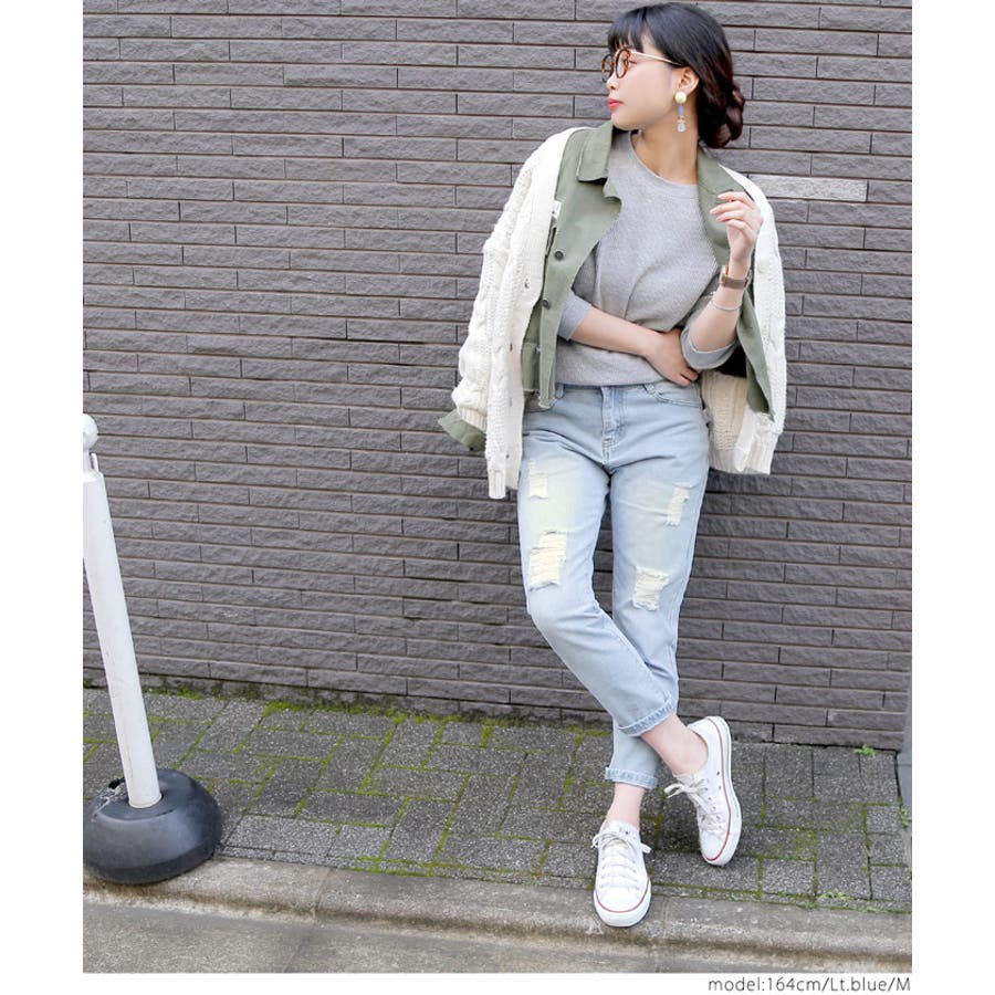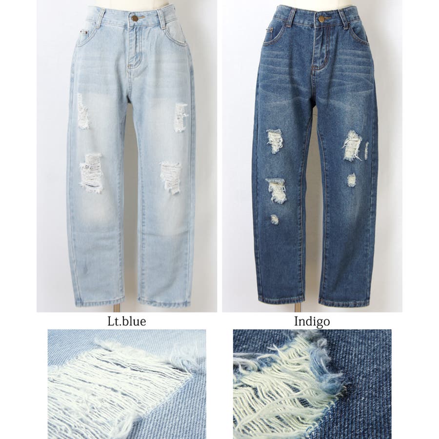 ゆったりシルエットのダメージデニムパンツ(ボーイフレンド ジーンズ クロップド丈