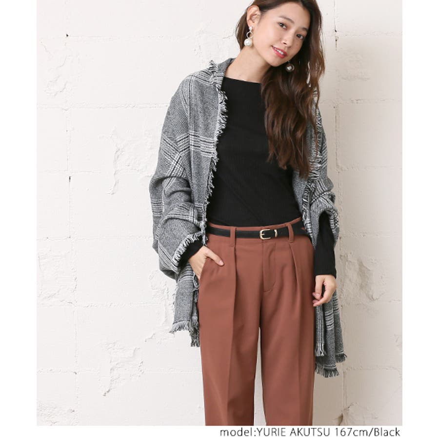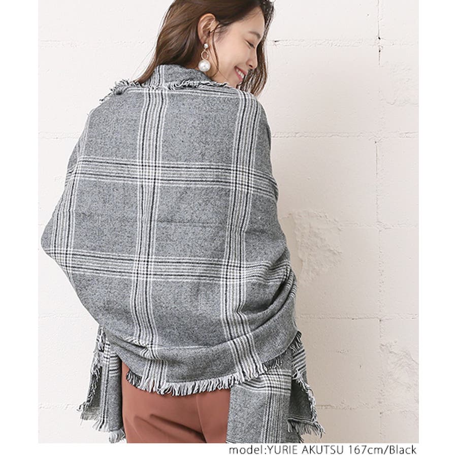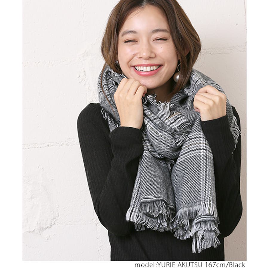 上品シックカラー大判チェックストール 阿久津ゆりえさん着用(モノトーン マフラー