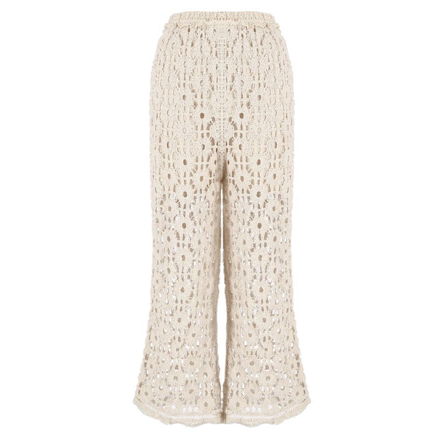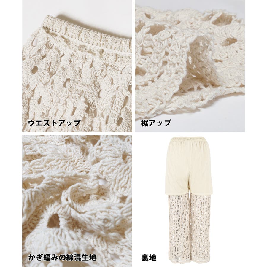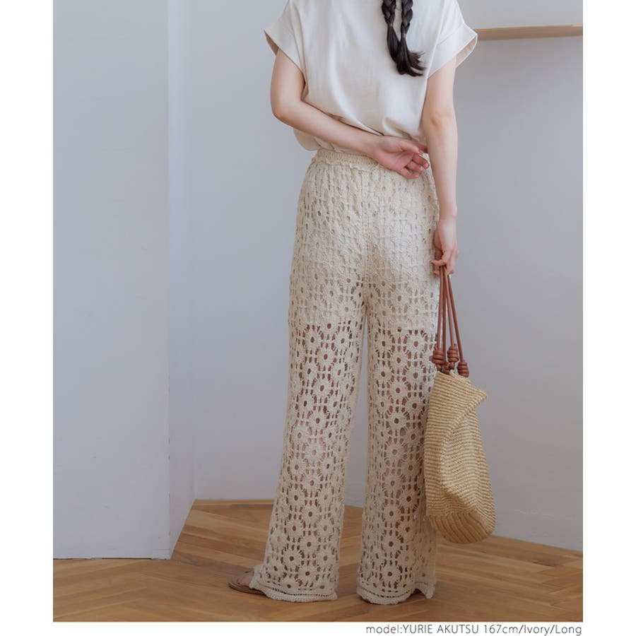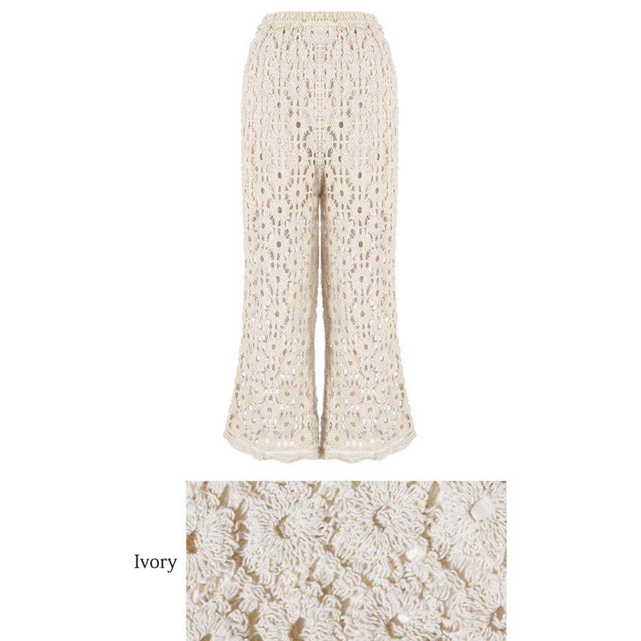 パンツ レディース かぎ編み 透け感 裏地付き ズボン かぎ編み 鍵編み ウエストゴム カジュアル シンプル フレア ボトムス イージーパンツ カギアミ フレアパンツ クロシェ セミフレア かぎあみ 裏地 ウエストフリル クロシェボトムス コカ COCA coca COCA coca