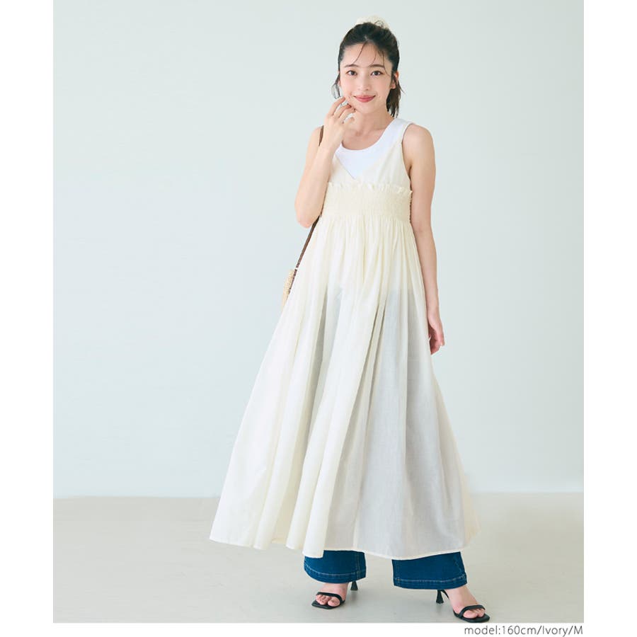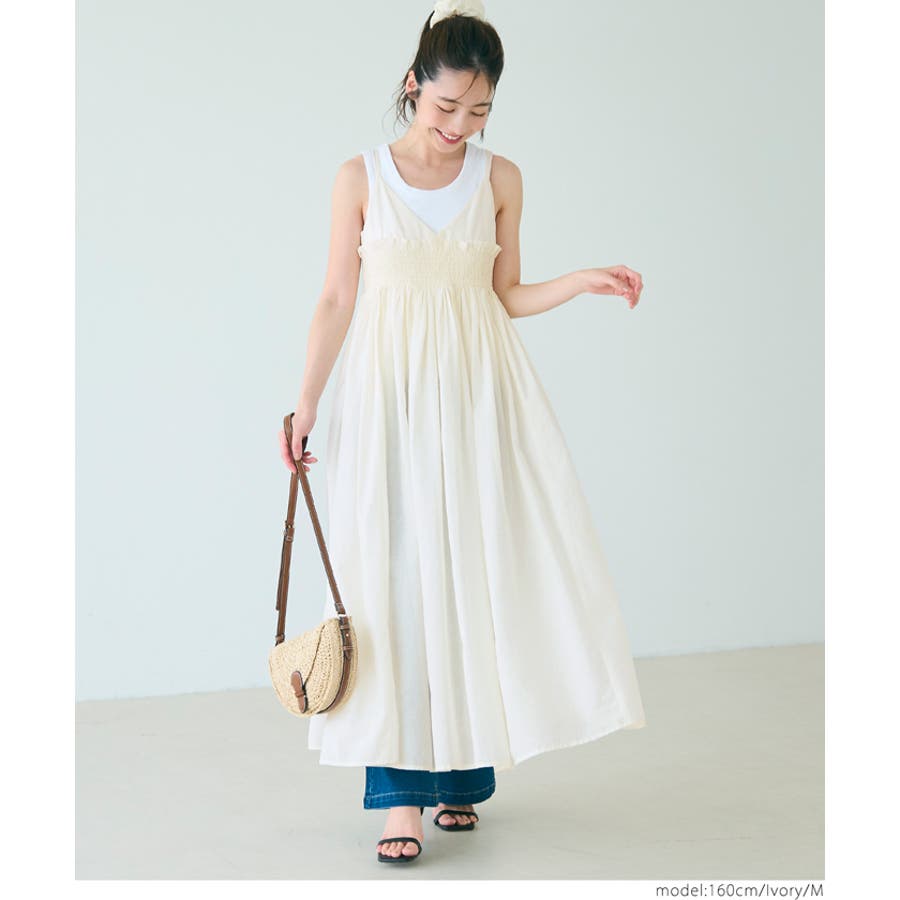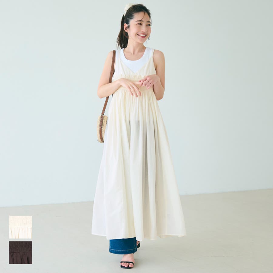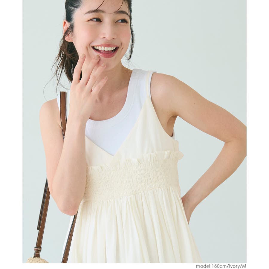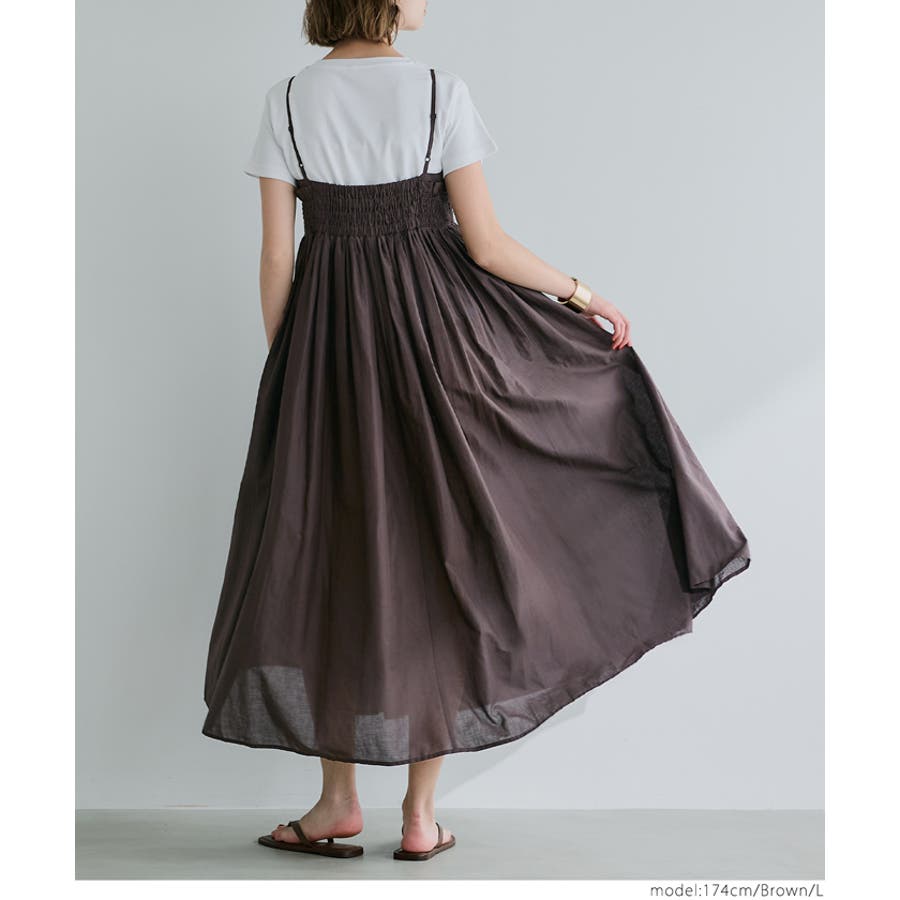 ワンピース ロング キャミワンピ ギャザー シャーリング レイヤー 重ね着 ゴム 肩紐調節可 インド綿 カジュアル 25ss コカ COCA coca COCA coca おしゃれ 可愛い きれいめ おとな 大人 女性ファッション 韓国 春服 夏服 春 夏 カジュアル プチプラ 10代 20代 30代 40代 50代 ホーム シンプル
