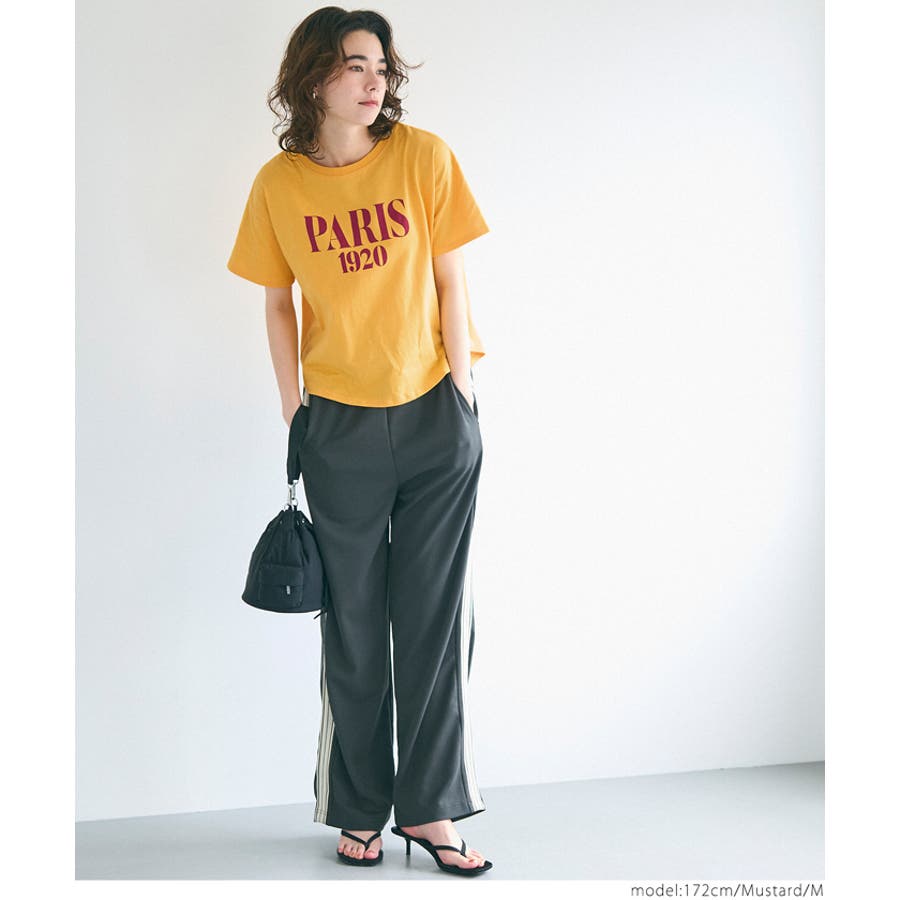 さりげないロゴプリントが目を引く、シンプルながら今っぽさのある一枚。