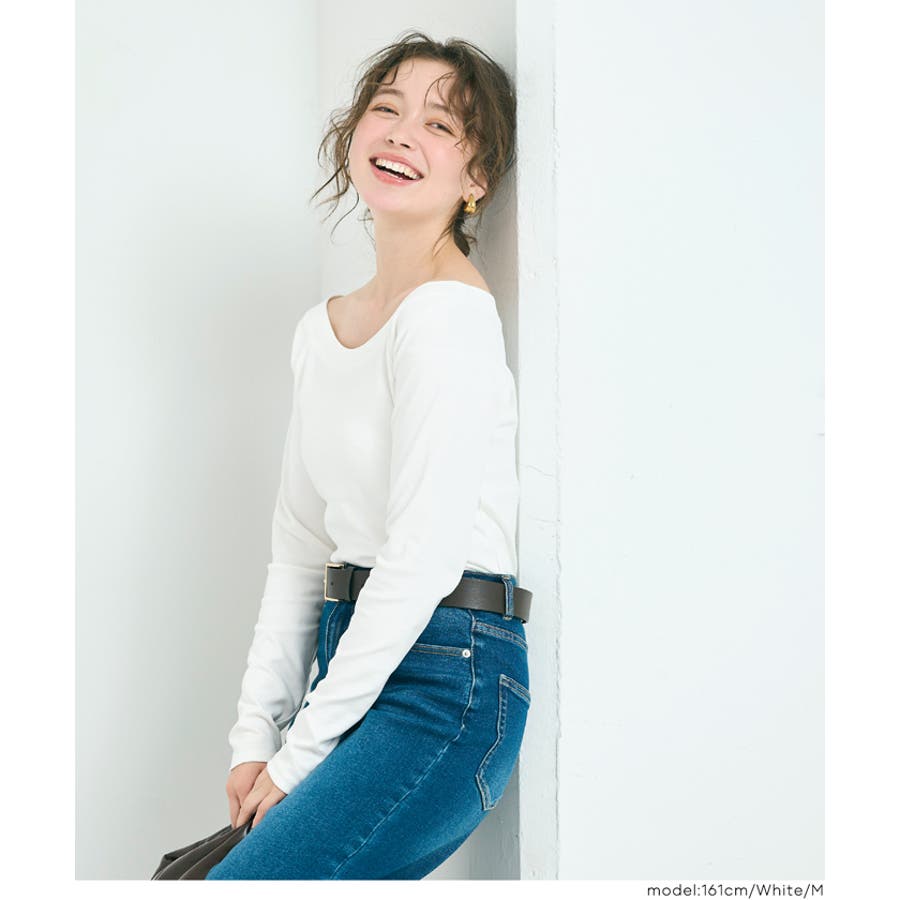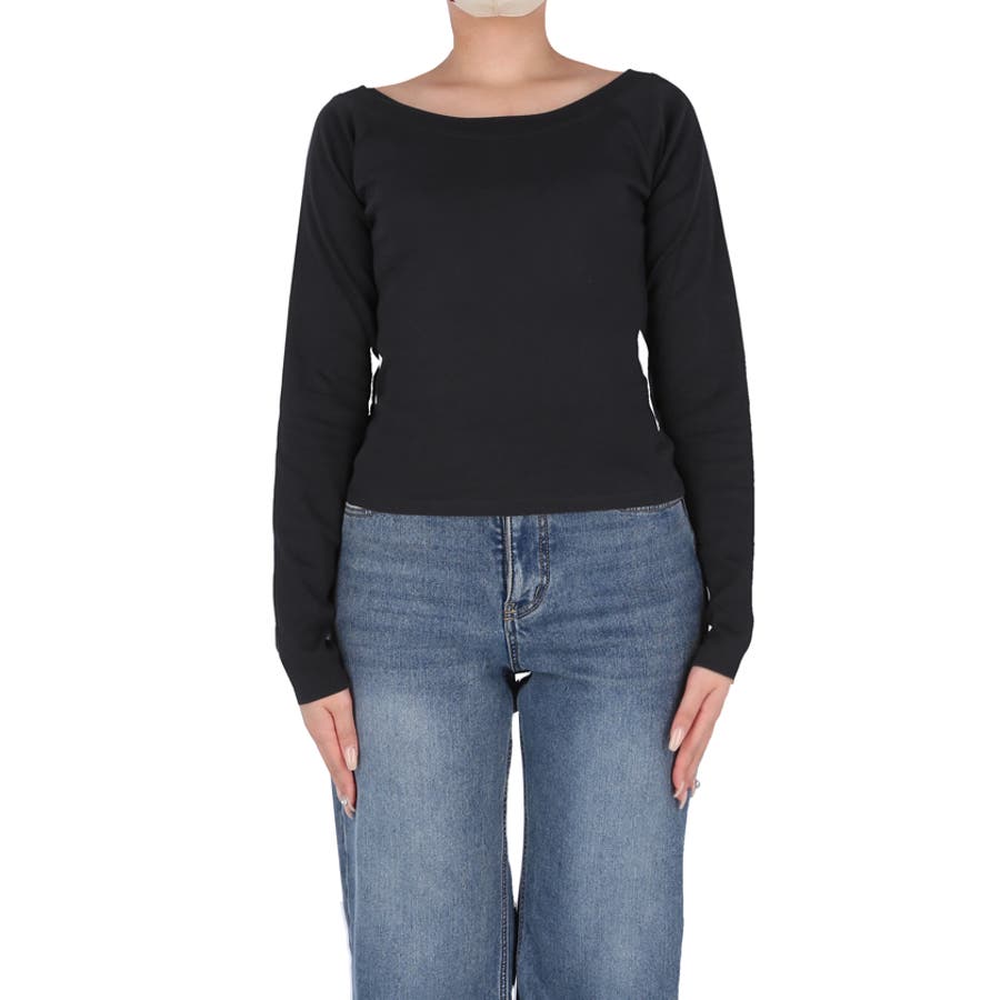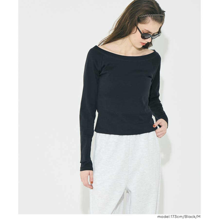 滑らかな肌触りと美シルエットが魅力のスムースラグランオフショルダートップス