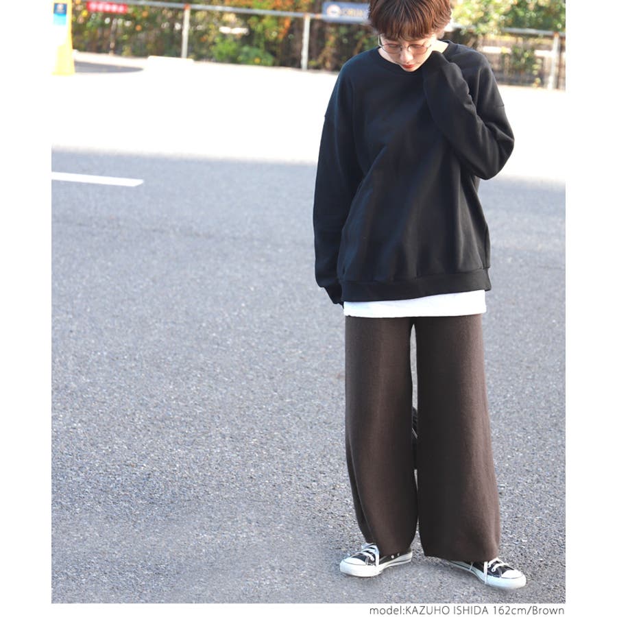やわらかゆったりリブニットパンツcocaオリジナル 石田一帆さん着用(ロングパン…