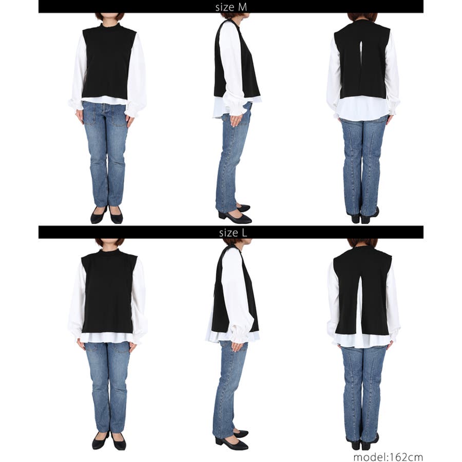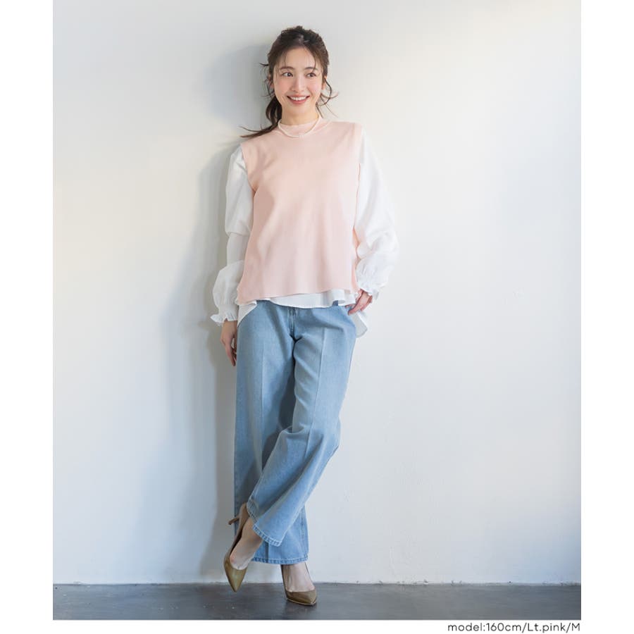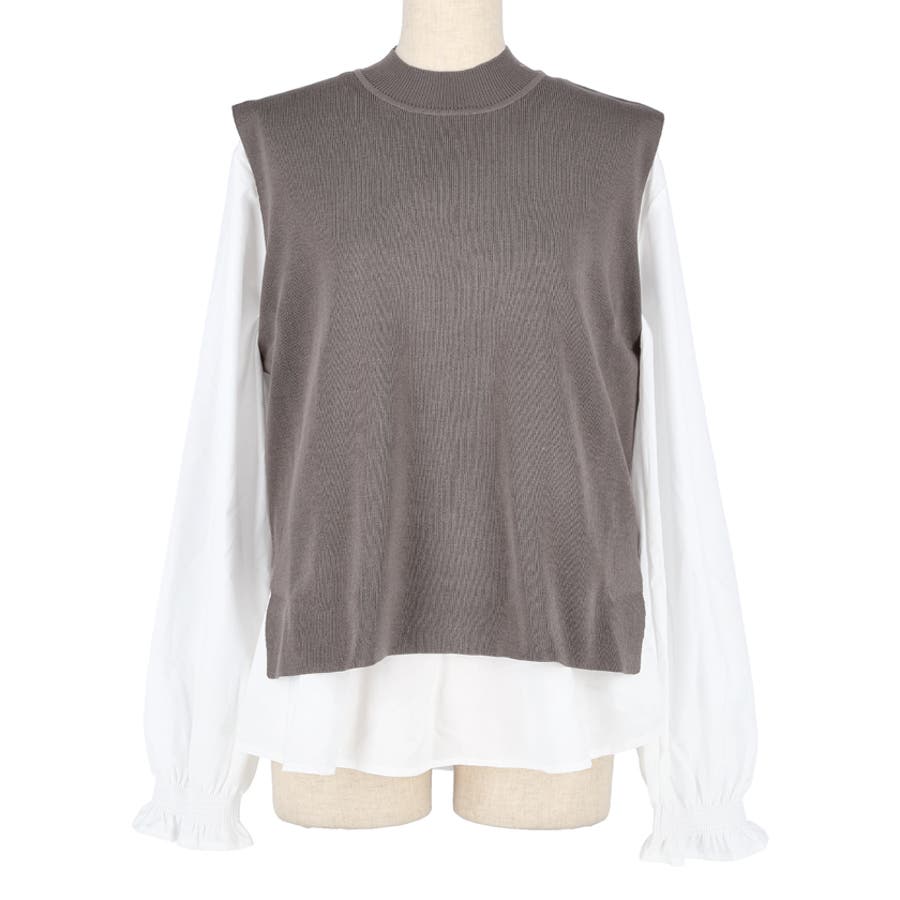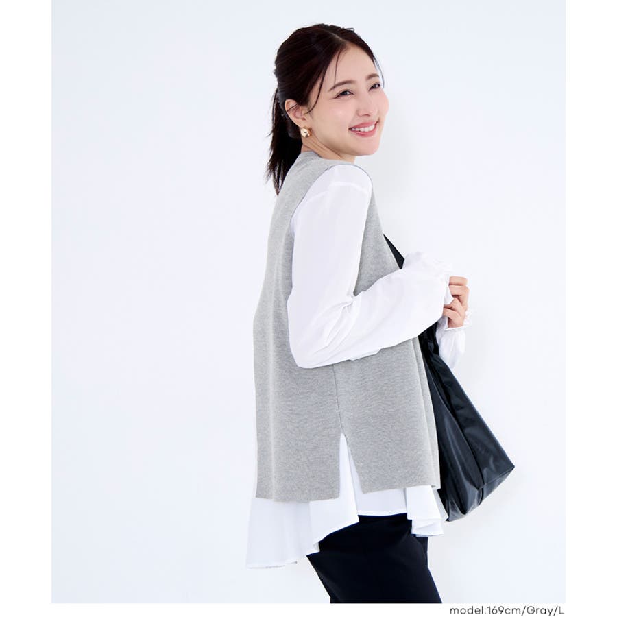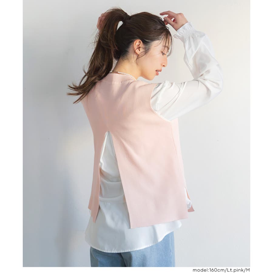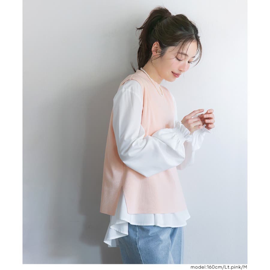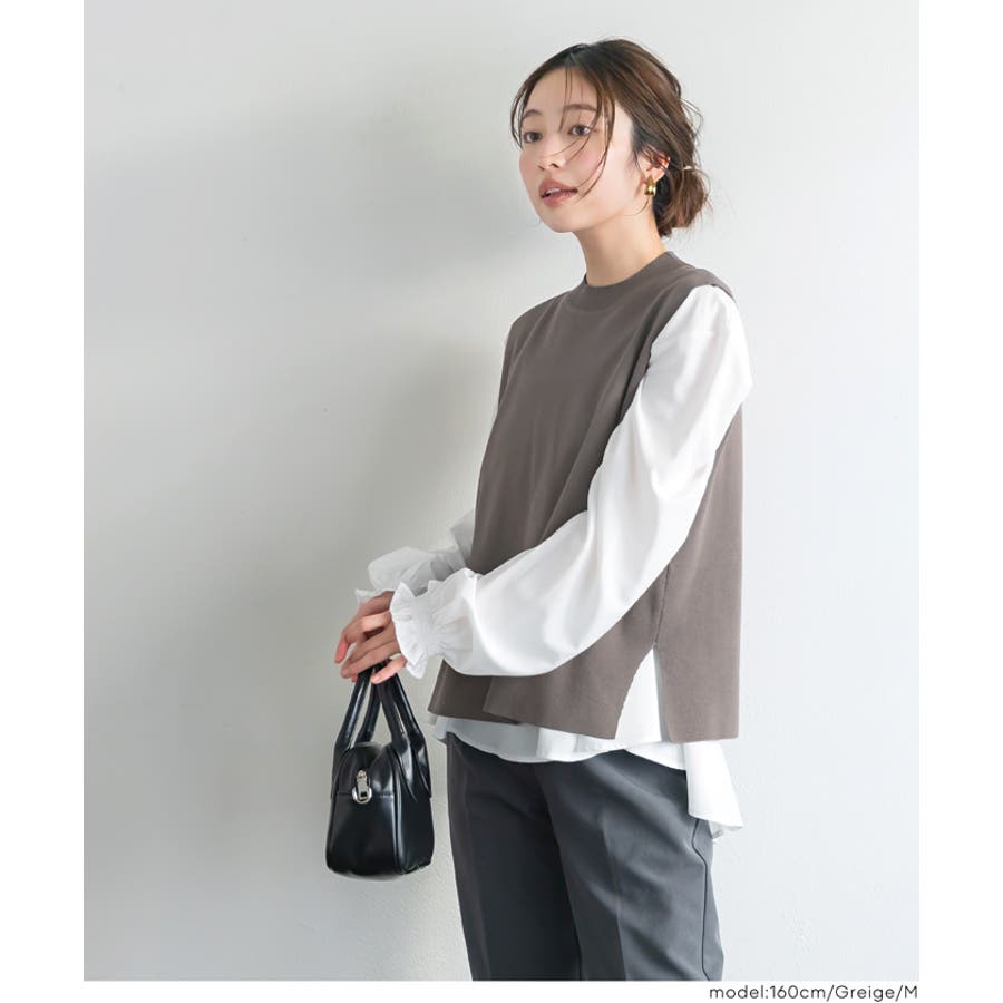 トップス ブラウス ベスト サイドスリット バックスリット 袖フリル 2way レイヤード 重ね着 ドッキング テールカット 無地 26ss コカ COCA coca COCA coca おしゃれ 可愛い きれいめ 秋 秋服 冬 冬服 おとな 大人 女性ファッション 韓国 カジュアル プチプラ 10代 20代 30代 40代 50代 オフィス ホーム シンプル オフィスカジュアル