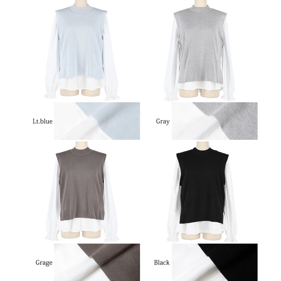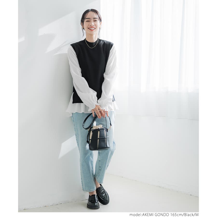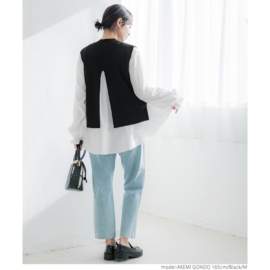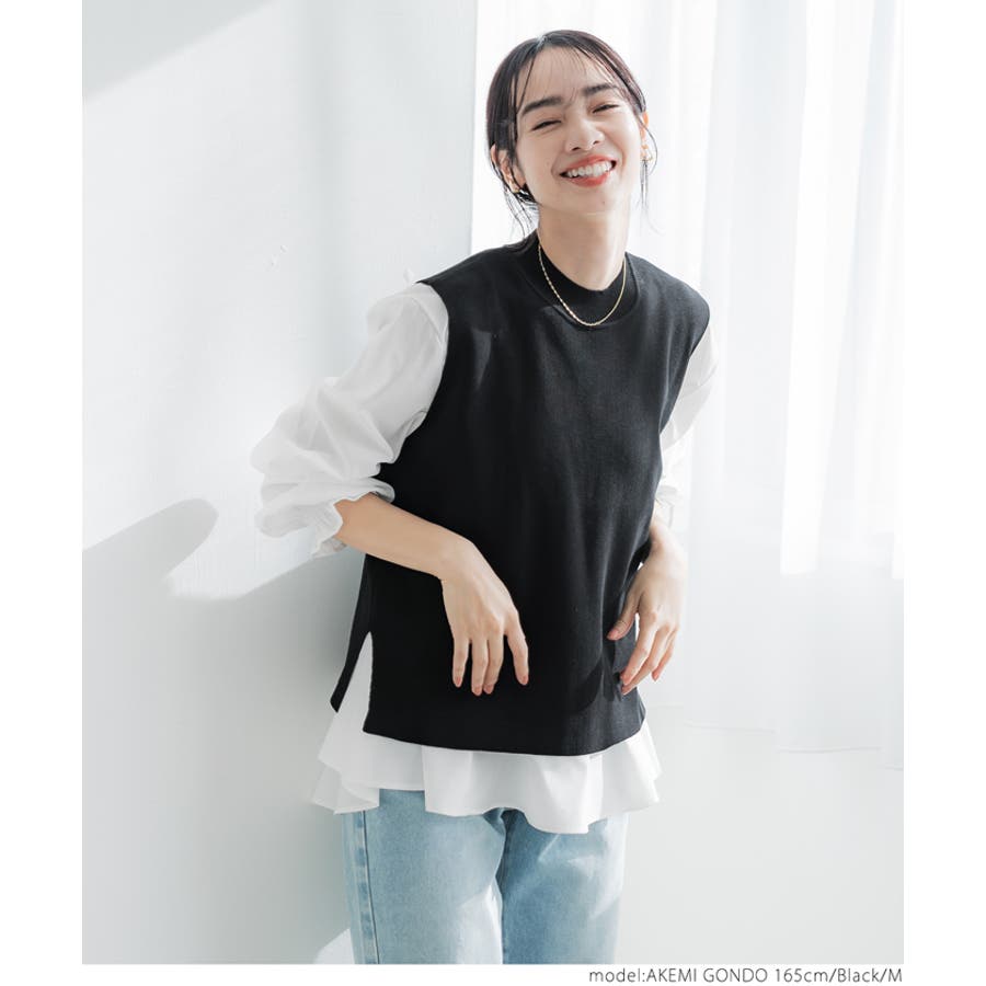 トップス ブラウス ベスト サイドスリット バックスリット 袖フリル 2way レイヤード 重ね着 ドッキング テールカット 無地 25ss コカ COCA coca COCA coca