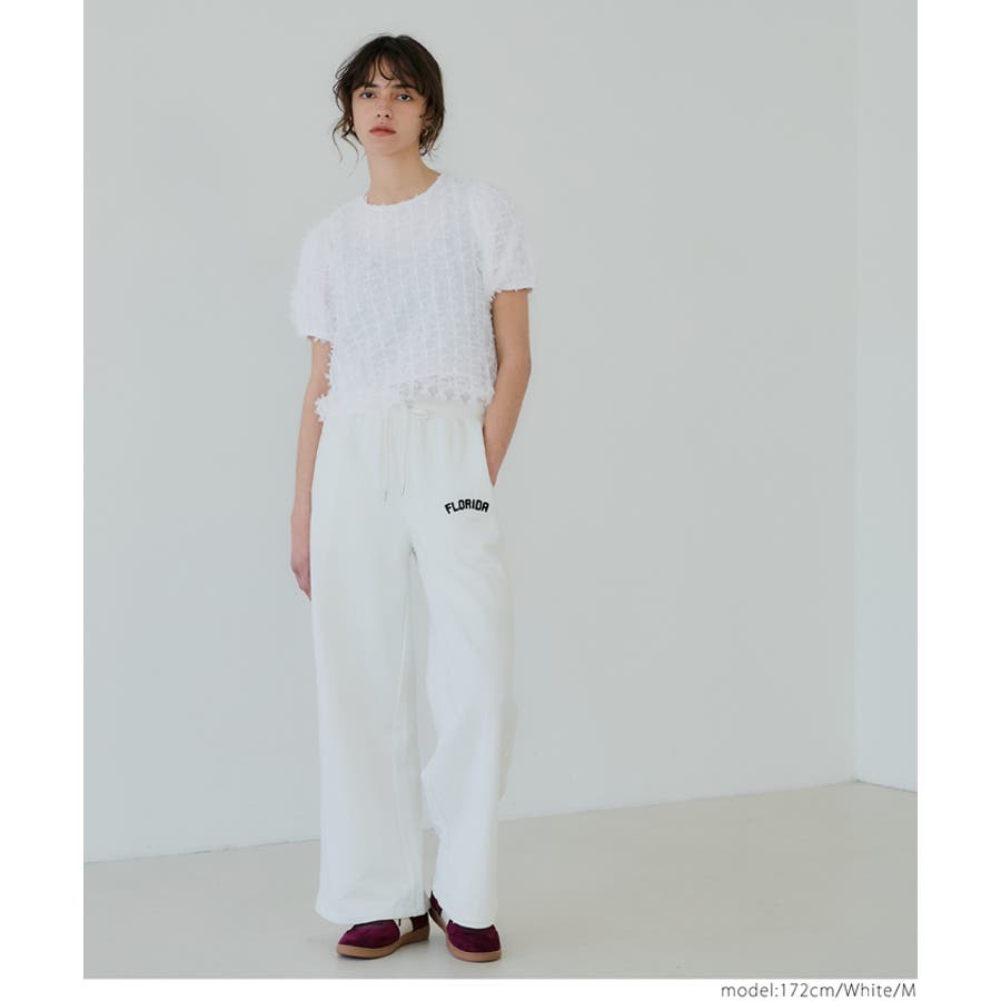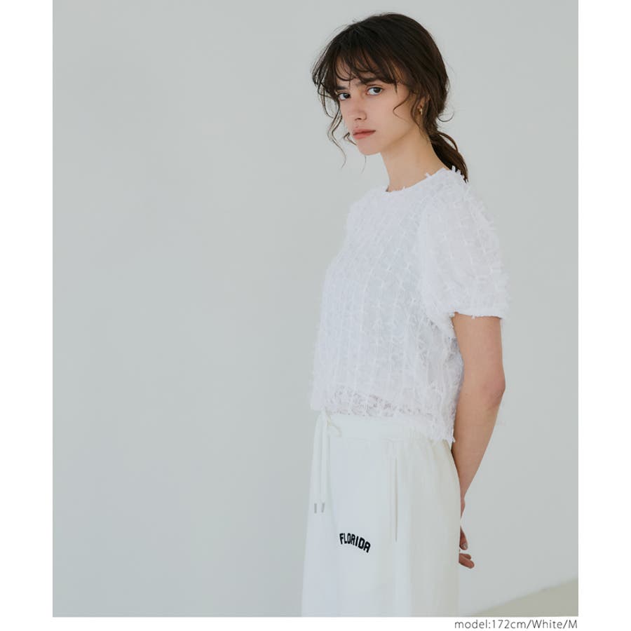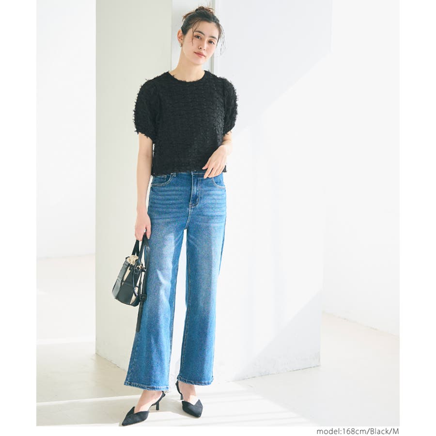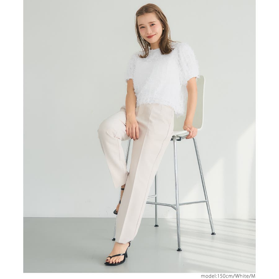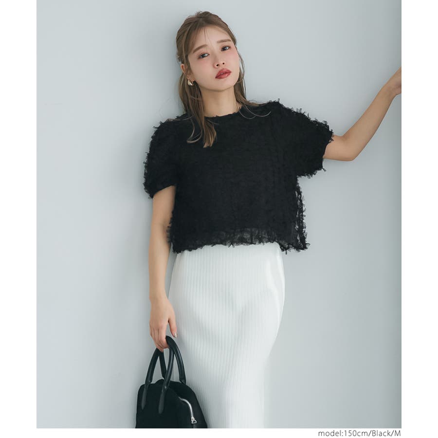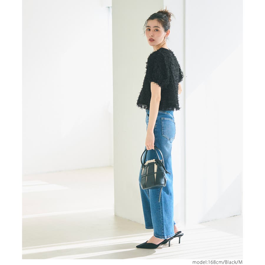 立体感のあるフリンジ素材が、上品でトレンド感のあるスタイルを演出。