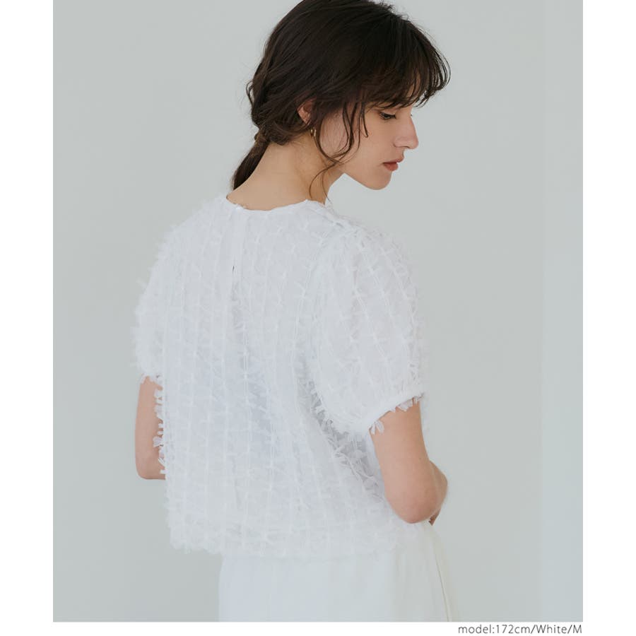 【[White]】リボンチュールブラウス レディース