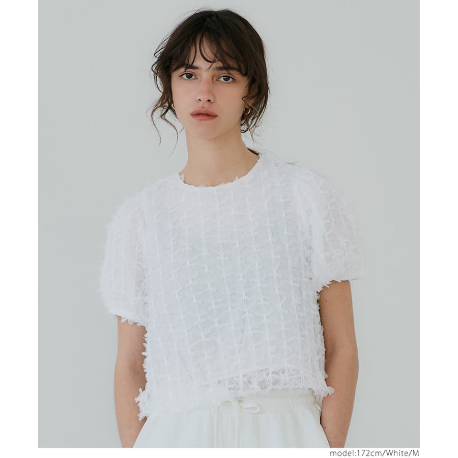 トップス リボン チュール ブラウス バルーン パフスリーブ 韓国風 透け感 短丈 クロップド ガーリー 25ss コカ COCA coca COCA coca おしゃれ 可愛い きれいめ おとな 大人 女性ファッション 韓国 春服 夏服 春 夏 カジュアル プチプラ 10代 20代 30代 40代 50代 オフィス ホーム シンプル