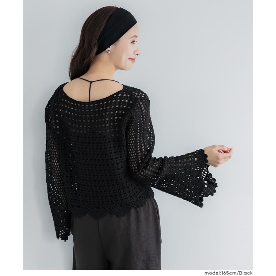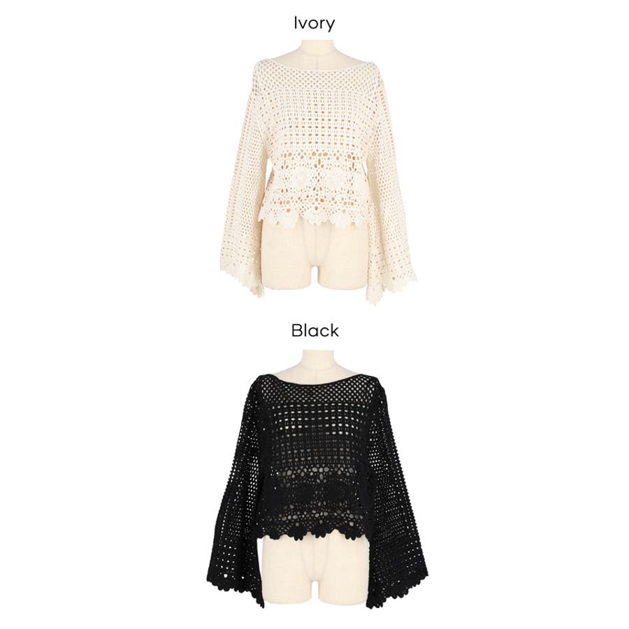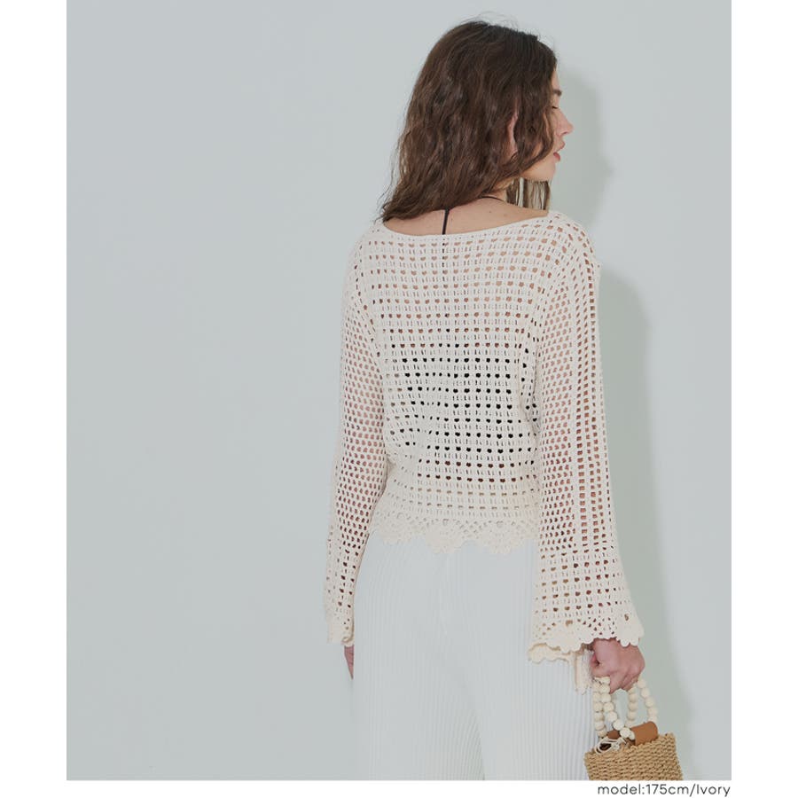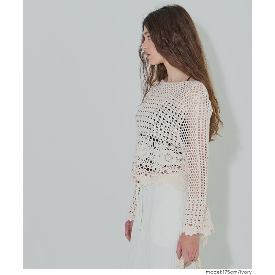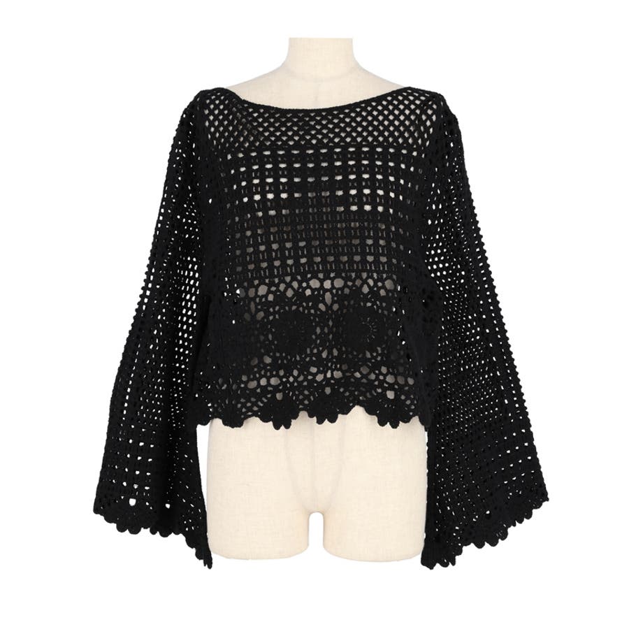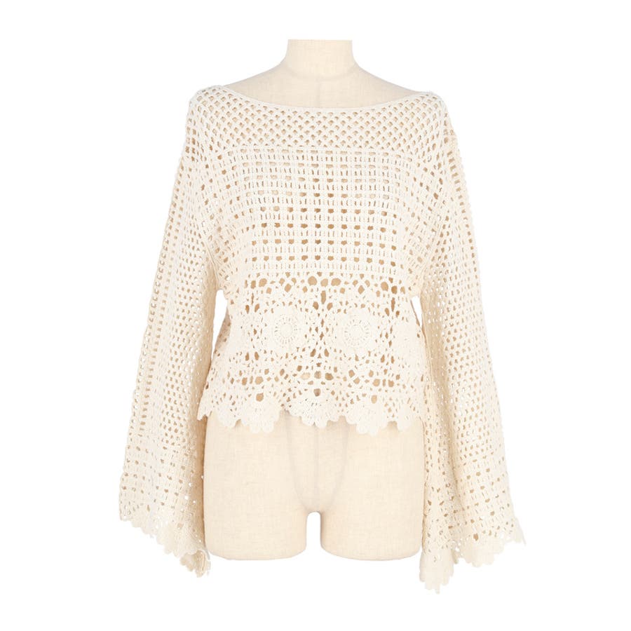 フレアスリーブクロシェニット