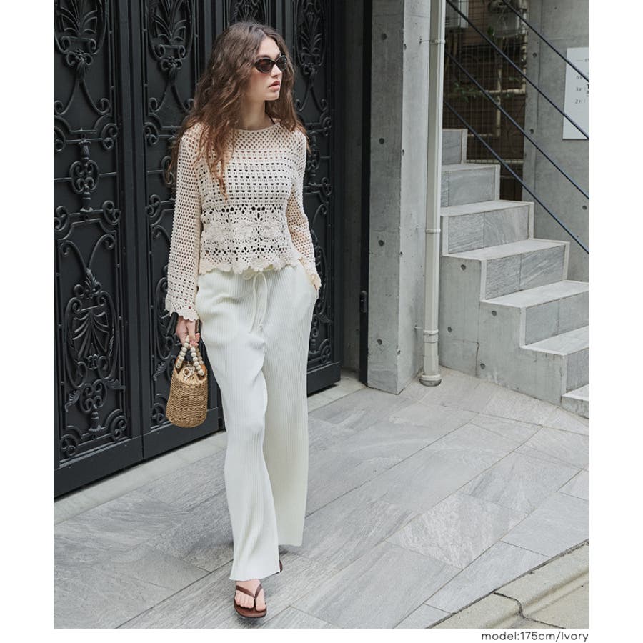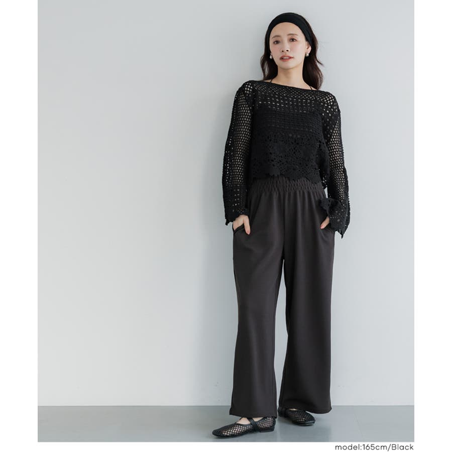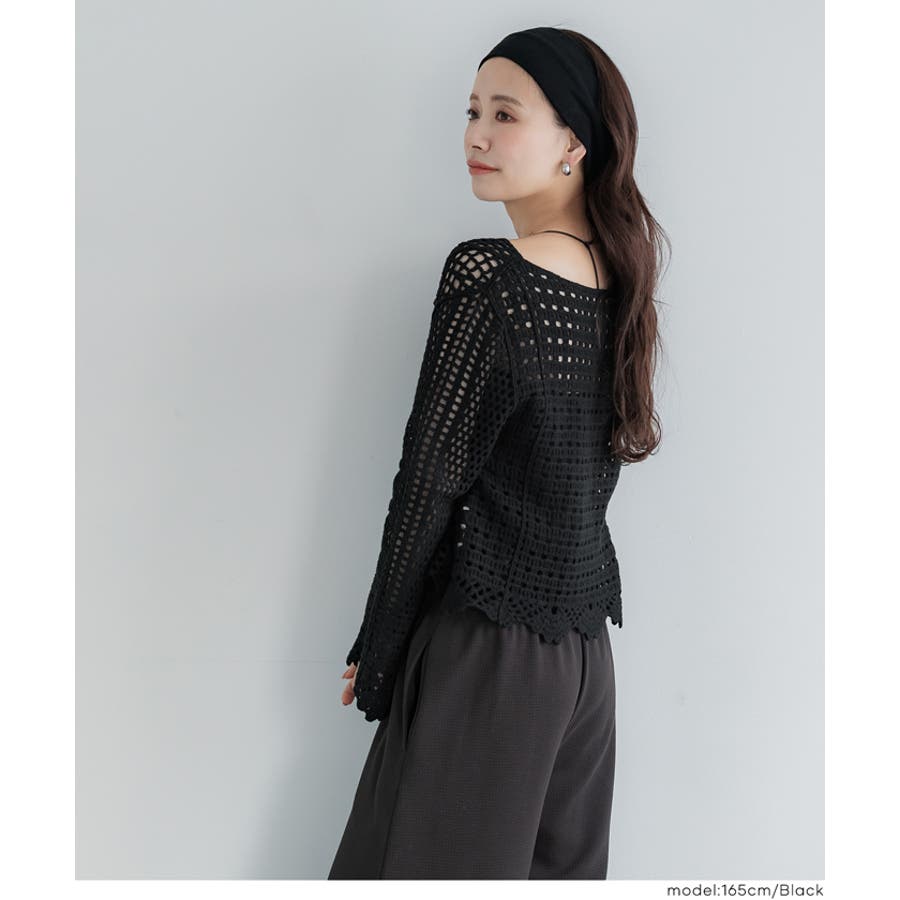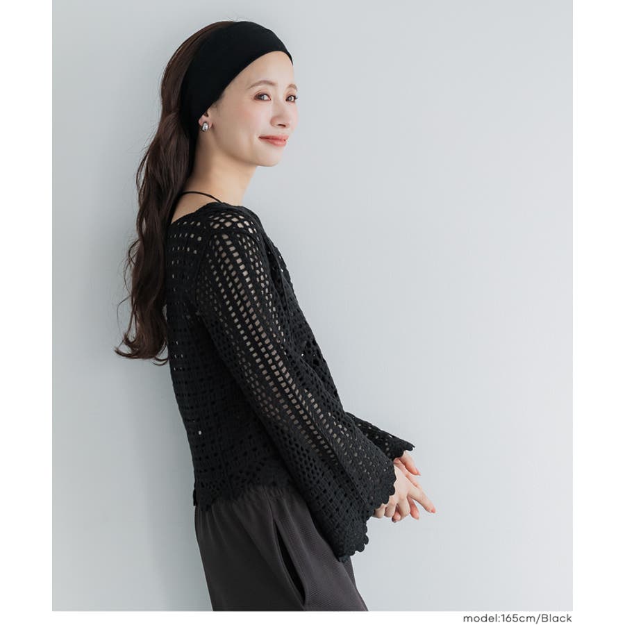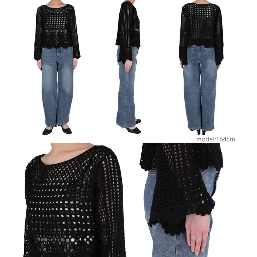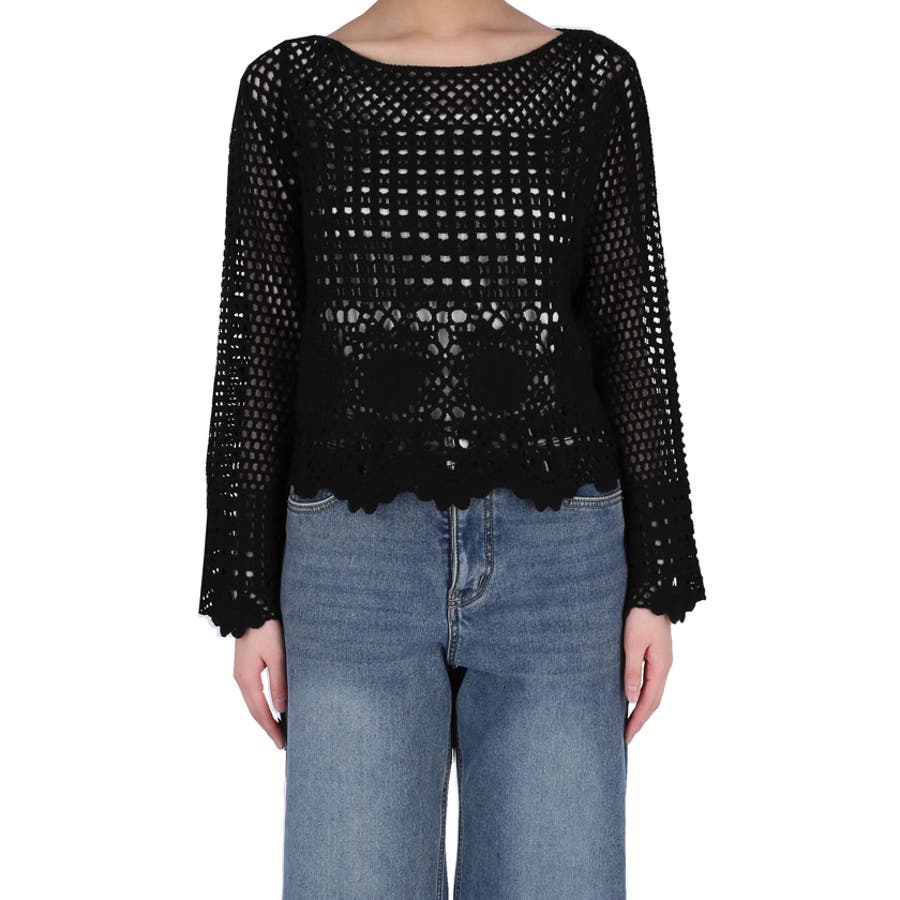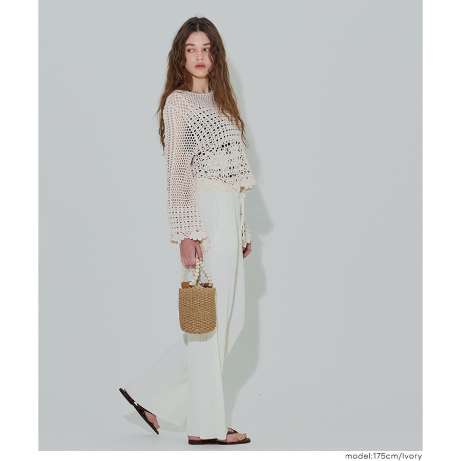 フレアスリーブクロシェニット