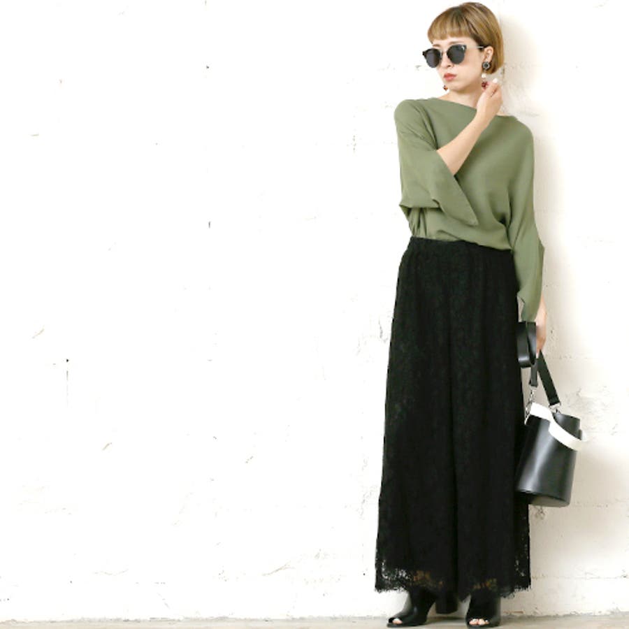 上品なフレアシルエットで体型カバーできるワイドパンツ