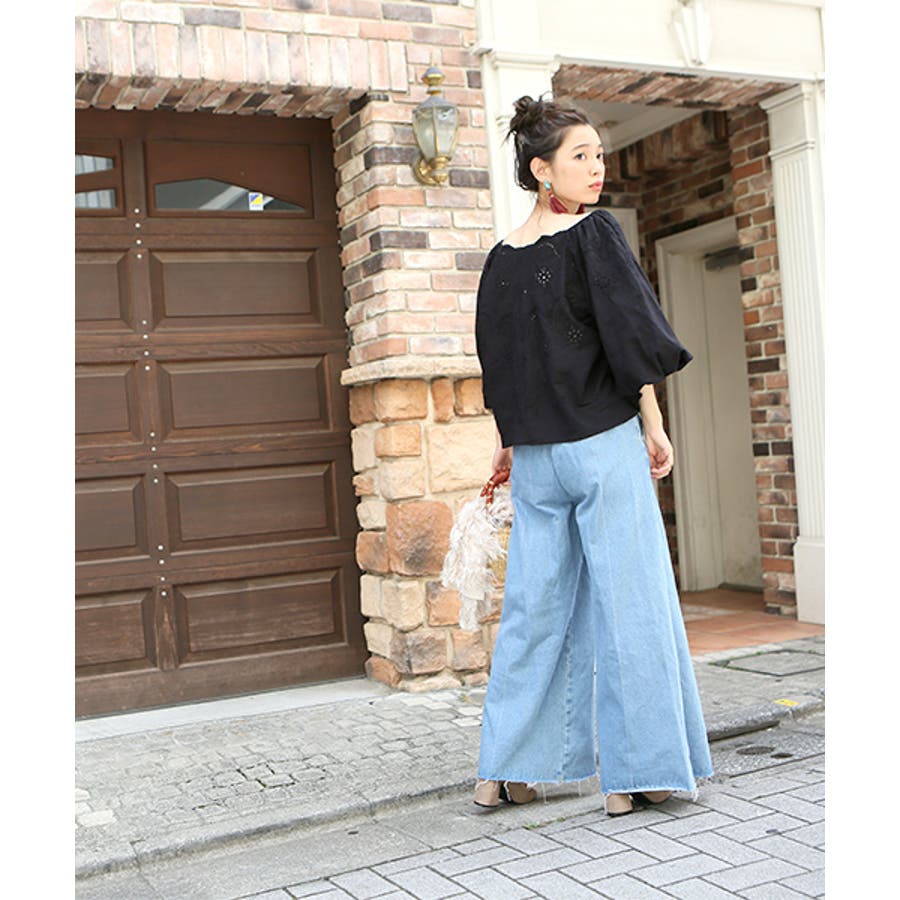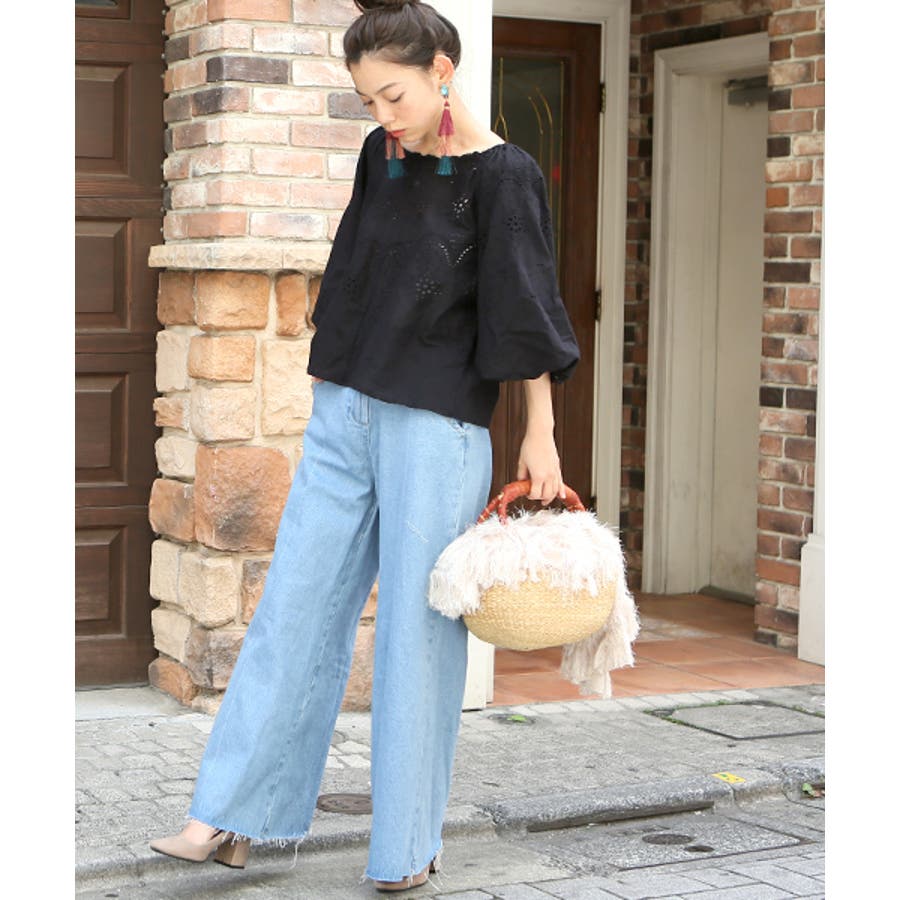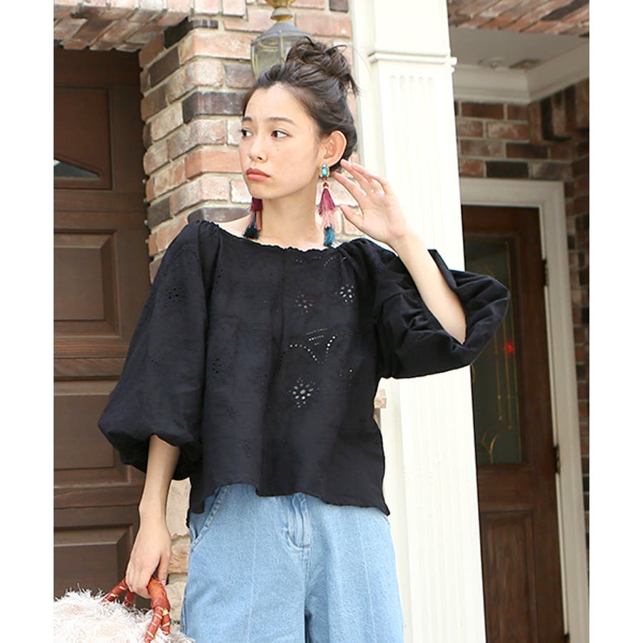 ふんわりバルーンスリーブが華奢見せしてくれるカットワークブラウス