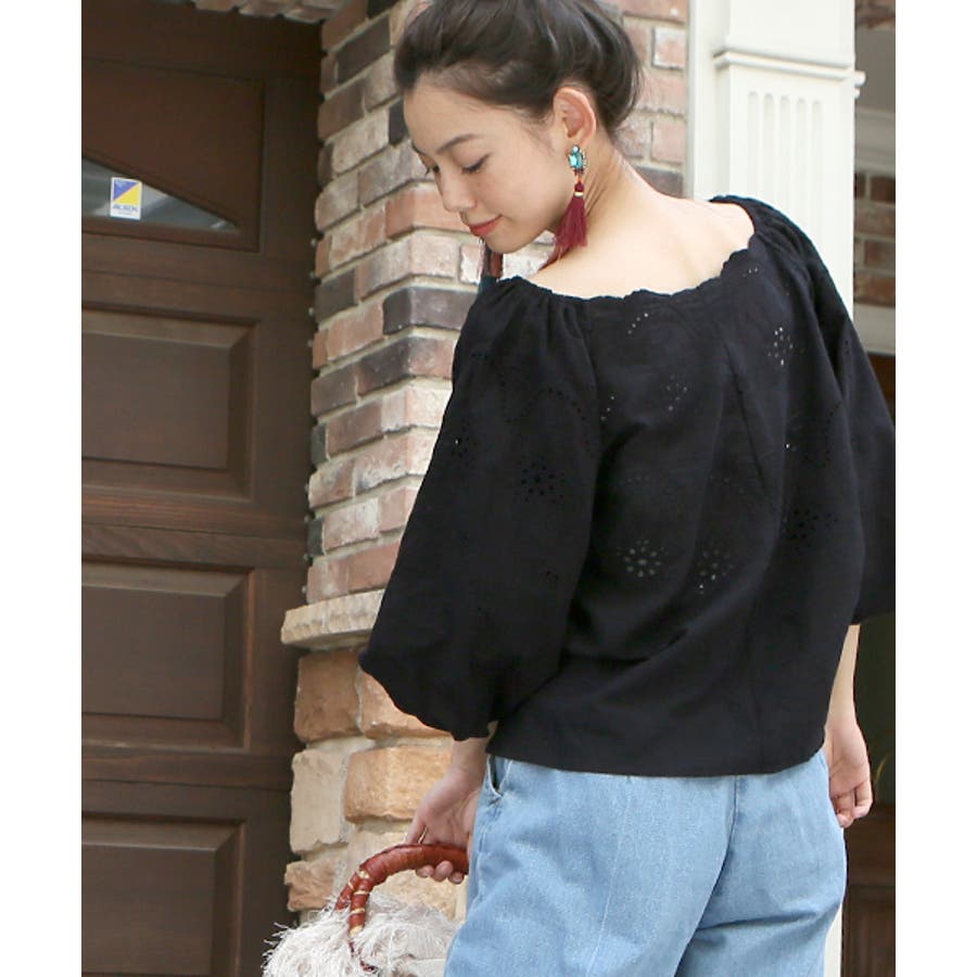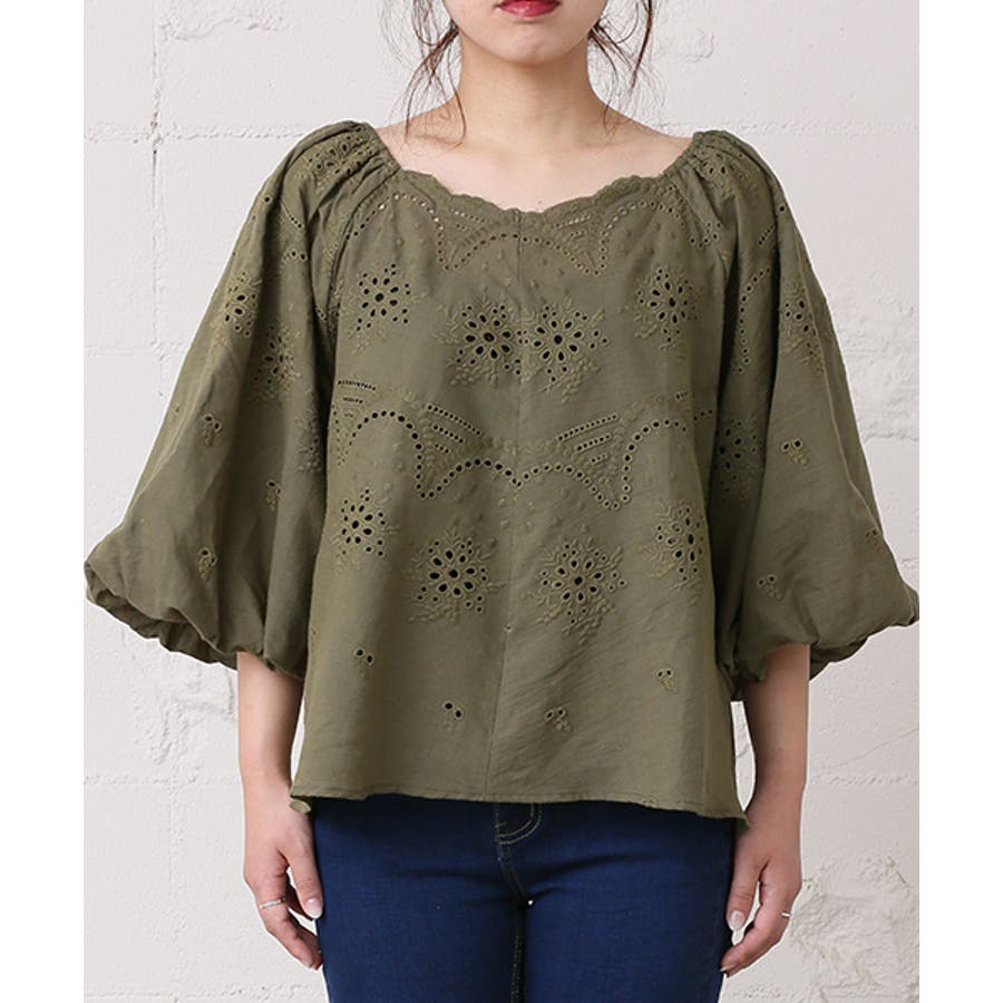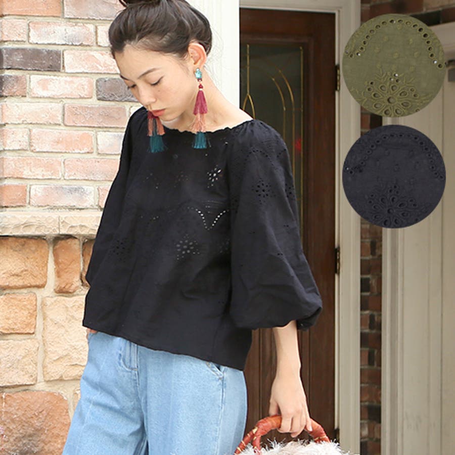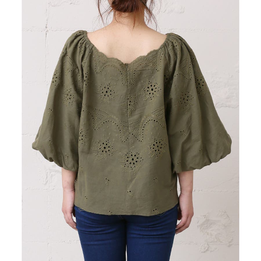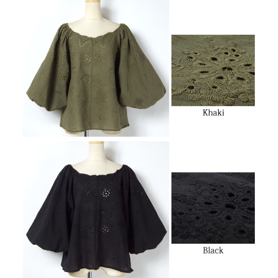 バルーンスリーブコットンカットワークブラウスcocaオリジナル